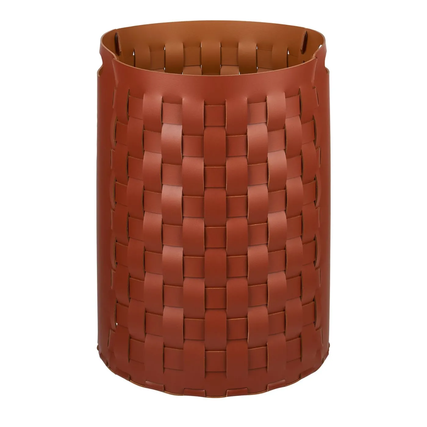 Una celebrazione dell’eleganza funzionale, questo cestino classico color cognac seduce con il suo motivo a onde grosse, ispirato al vimini, composto da rettangoli e quadrati. La ricca tonalità esalta la sua intricata trama, creando un ipnotico gioco di luci e ombre. Il design versatile di Ekaterina Borovkova, dotato di un sacchetto interno in tessuto e di un coperchio opzionale, trascende la lavanderia, abbellendo diversi ambienti con una raffinatezza unica.