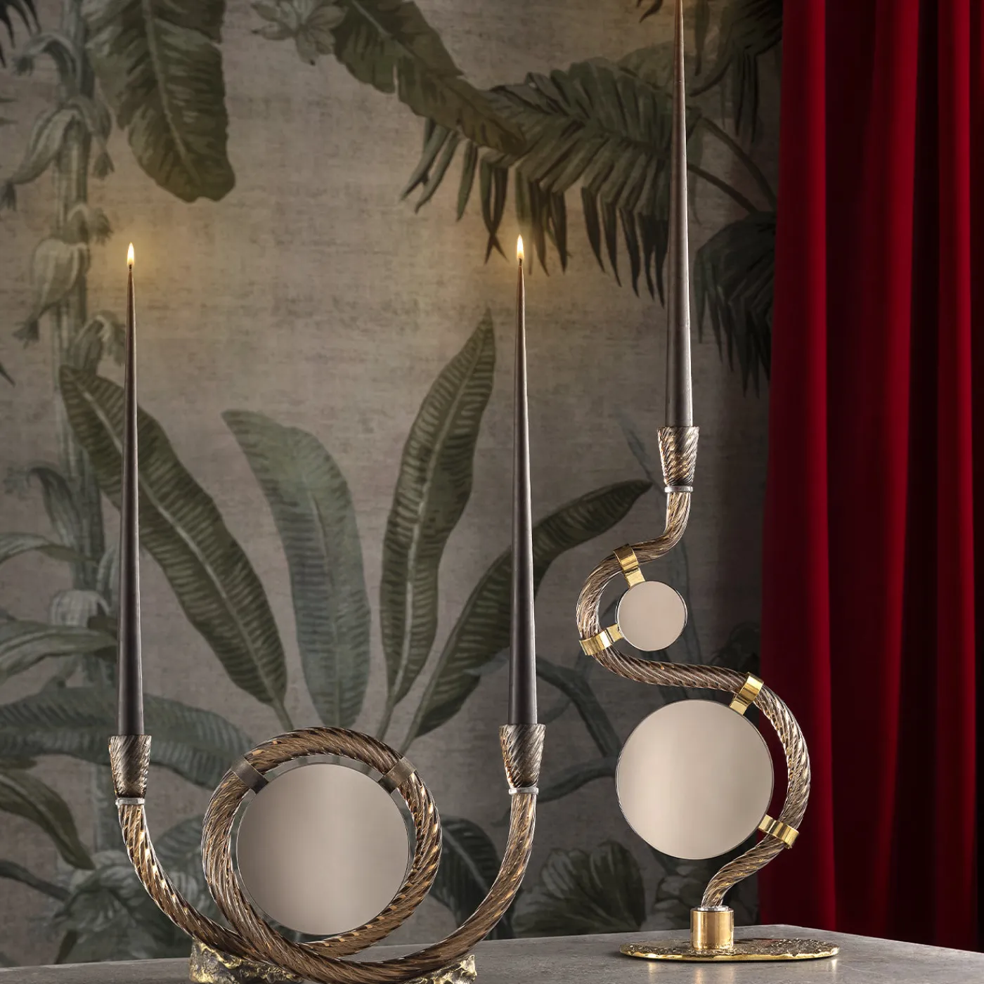 Il portacandela in vetro di Murano San Marco presenta morbide tonalità caffè che aggiungono calore e sofisticatezza al suo design. Caratterizzato da una struttura a doppio portacandele unica con un elemento riflettente centrale, unisce eleganza e funzionalità. I dettagli intricati del pezzo e i sottili effetti di riflessione creano un’interazione affascinante di luce e texture, rendendolo un accento raffinato per ambienti interni lussuosi. Una candela è inclusa nel prezzo.