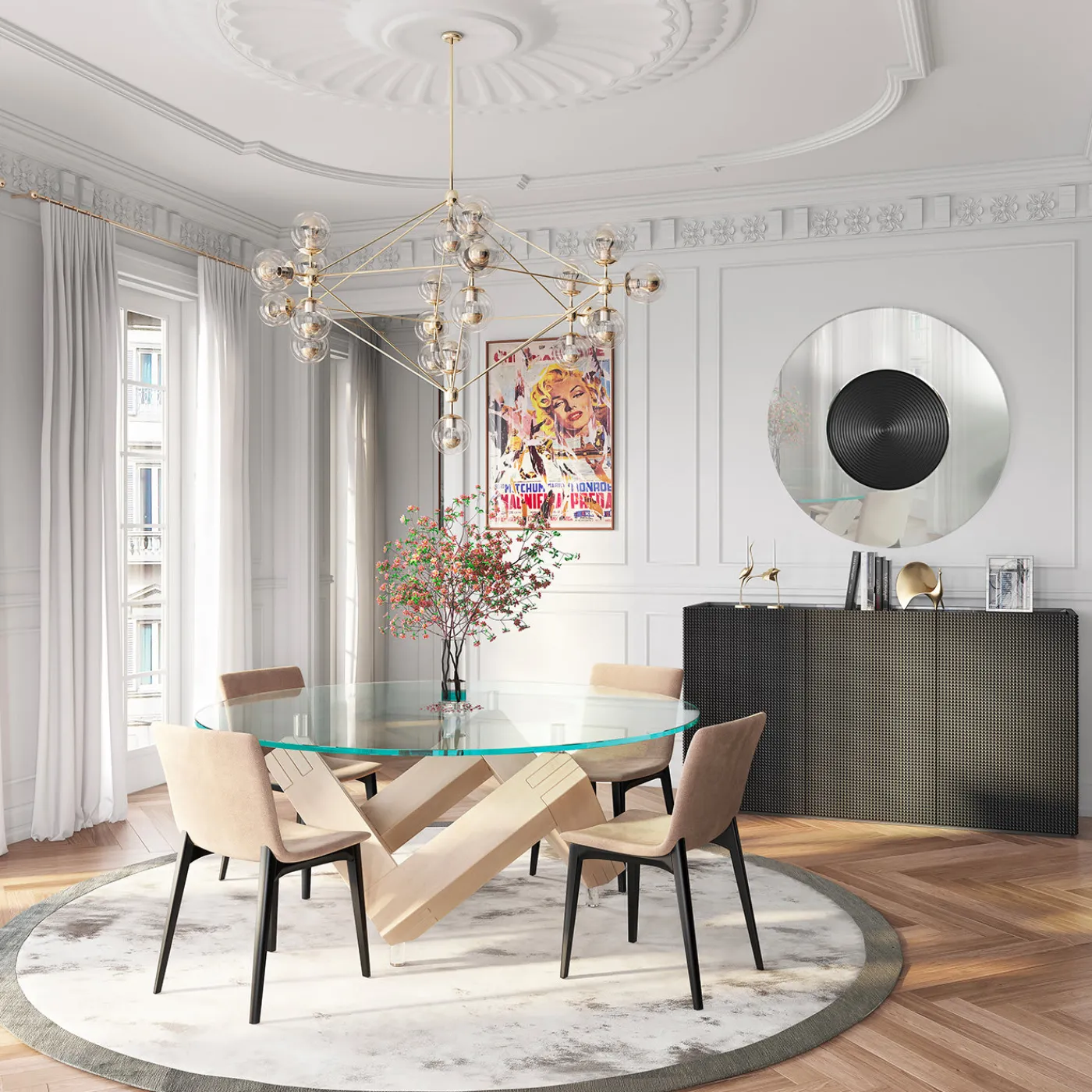 Un’aggiunta straordinaria a qualsiasi ambiente moderno, Gong-B è un mobile originale e sorprendente in colore oro. Di ispirazione tipicamente orientale, questo prezioso e sofisticato pezzo di design ha una struttura in legno MDF, con specchio esterno. Decorazioni e finiture realizzate a mano.