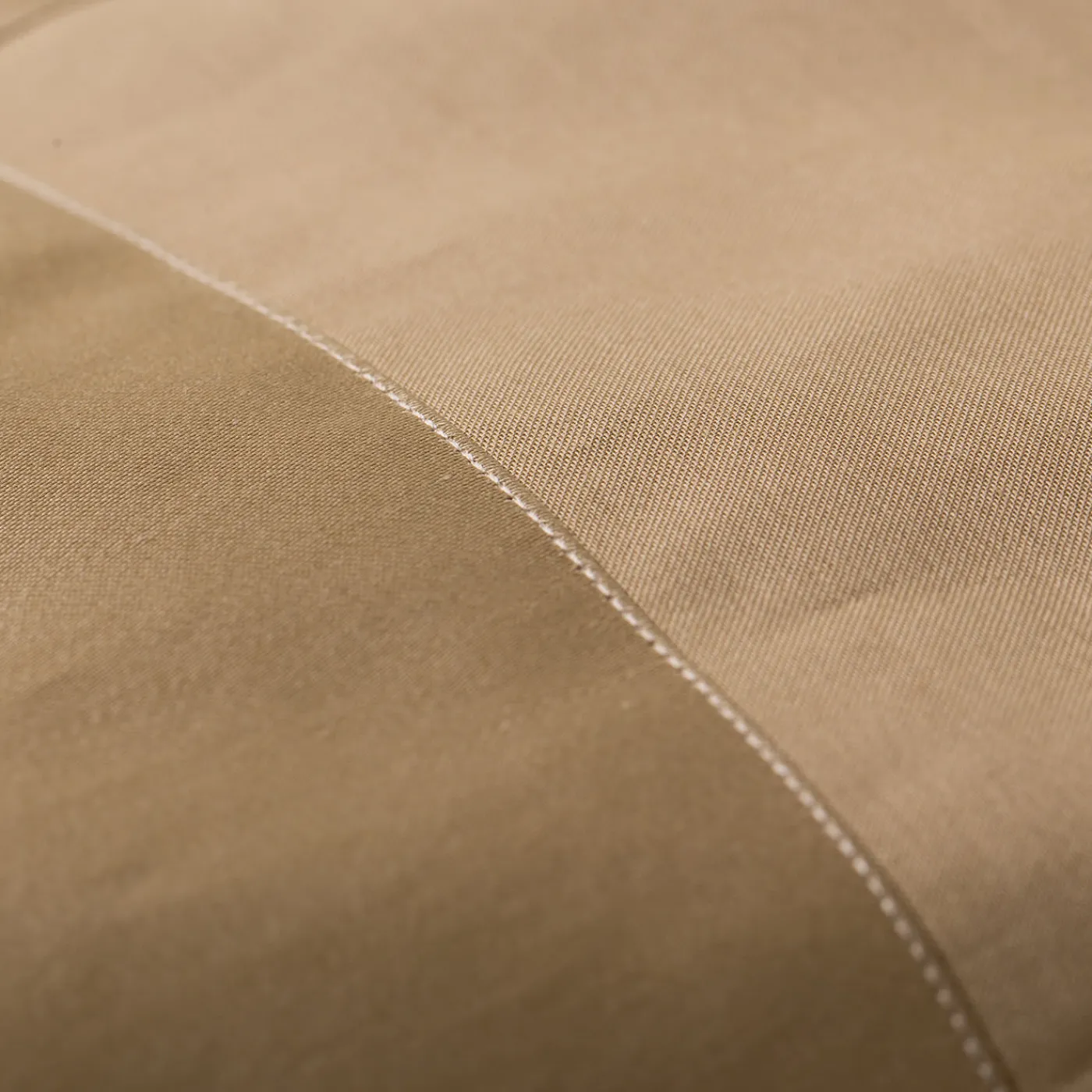 Questo set di biancheria da letto in raso pregiato è composto da lenzuola squisite di colore beige, impreziosite da angoli a mitria. Le federe sono in raso beige decorate con bordi marroni. Il lenzuolo matrimoniale è in beige. Raso da sogno di seta pettinata e mercerizzata a 300 fili in puro cotone, 110 g/m2. I bottoni sono in ottone e la targhetta metallica con il logo è goffrata e rifinita in oro 18 carati.