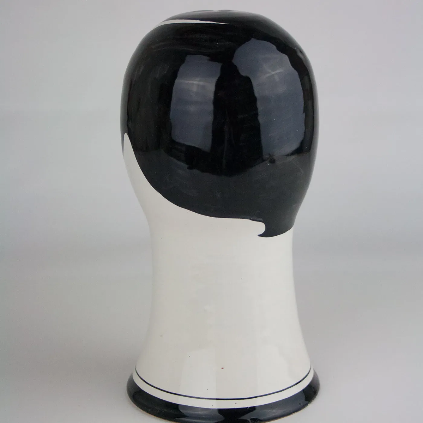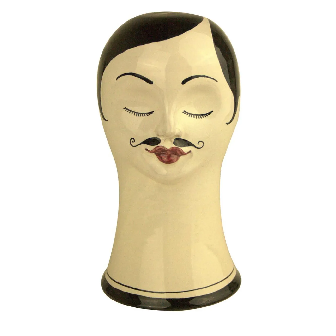 Parte di una serie di sculture in ceramica che raffigurano la testa di un uomo o di una donna addormentati con una sensibilità ipnotica, questo pezzo è una decorazione unica che sarà un’aggiunta accattivante in interni sia classici che moderni. Realizzata al tornio e dipinta a mano, questa scultura di una testa è caratterizzata da un collo allungato, labbra rosse, capelli neri, occhi espressivi, sopracciglia e baffi neri, una combinazione che rivela un sorprendente contrasto con lo sfondo bianco della ceramica. Onirico e poetico, questo pezzo può essere combinato con altri simili per un effetto unico.