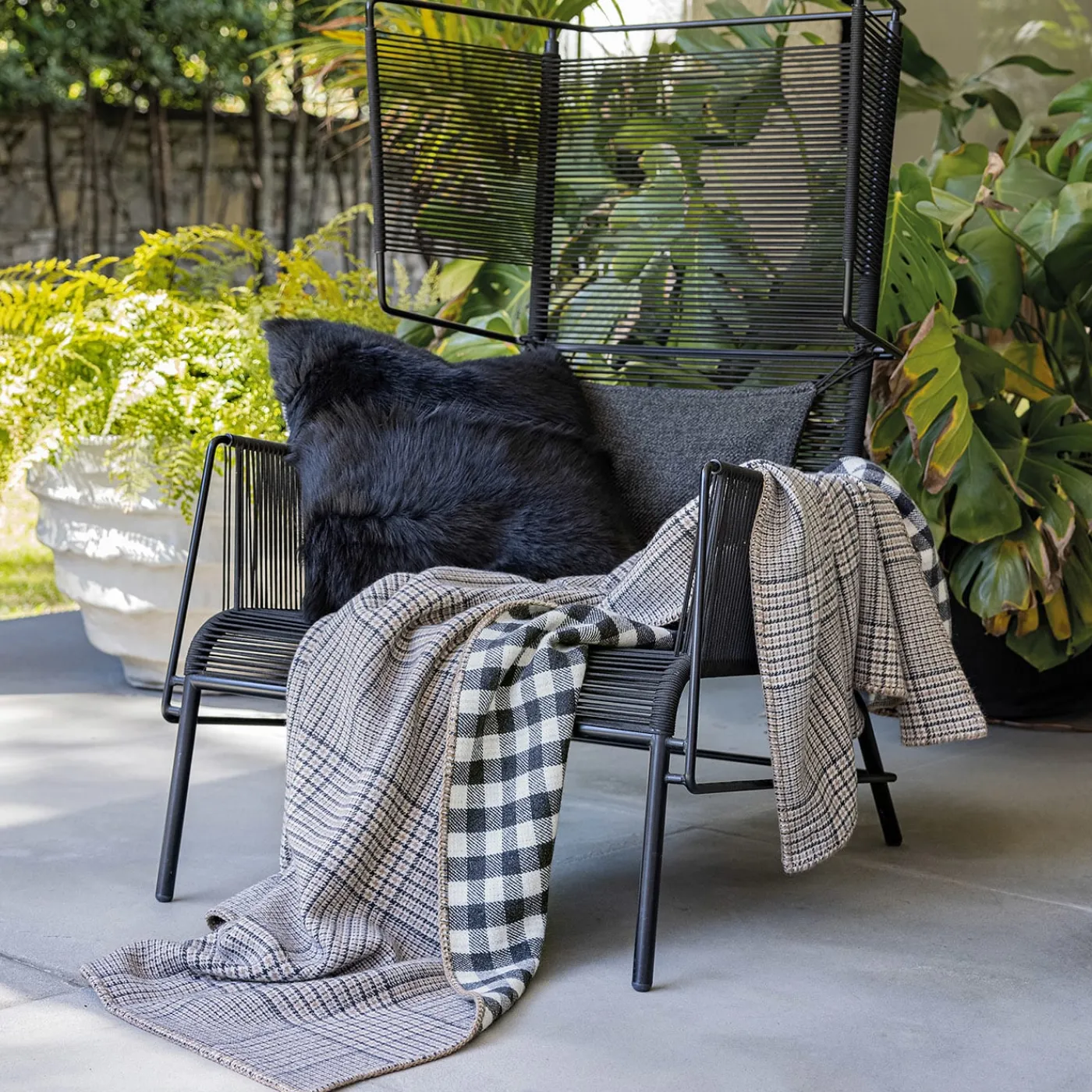 Filati di cashmere policromi abilmente intrecciati per ottenere un intrigante motivo jacquard a quadri conferiscono a questa piccola coperta un fascino fresco. Il design double-face e le cuciture a contrasto sottolineano la versatilità e la qualità sartoriale del disegno, rendendolo un must-have per i momenti di relax davanti al camino o per un pisolino.