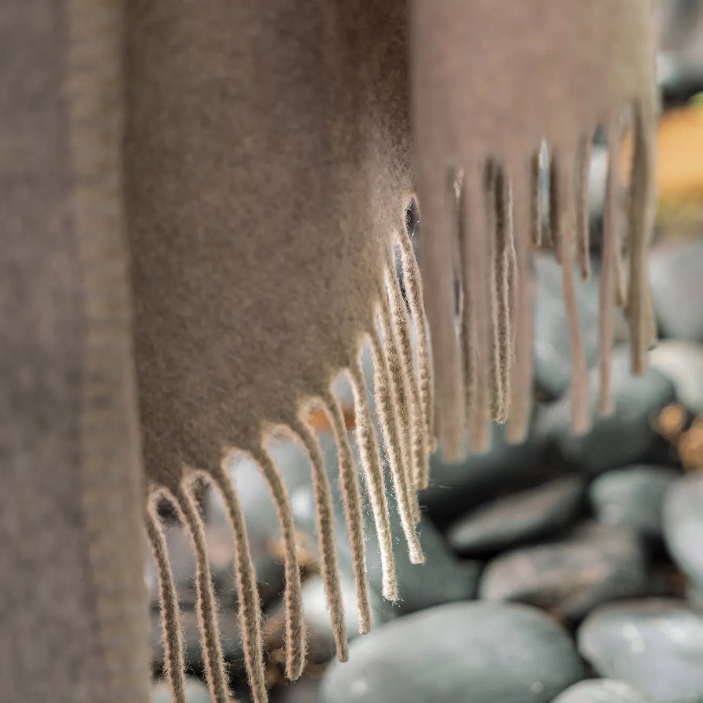 La preziosità del cashmere pregiato e l’eleganza di un design a tinta unita e double-face fanno di questa piccola coperta un complemento prezioso per ogni casa, ideale per temperare un colorato set di lanci o per completare divani dalle tonalità neutre. Morbida e leggera, è arricchita da frange e dettagli di cucitura che ne rivelano il carattere fresco e la qualità sartoriale. Una soluzione da srotolare per coccolare i momenti di relax.