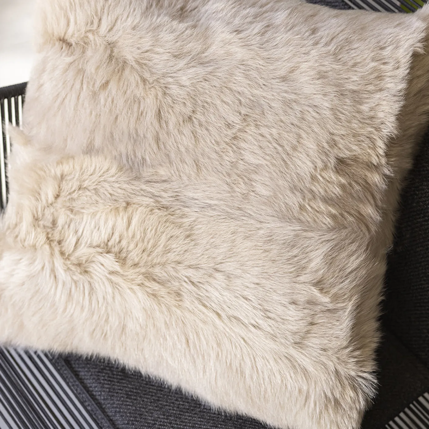 Peluche e glamour sono sintetizzati in modo impeccabile in questo cuscino unico, una soluzione superba per valorizzare qualsiasi tipo di interno con un pizzico di comfort e di stile in più. La ricca imbottitura interna, che lo rende voluminoso, è avvolta in un rivestimento double-face in cui un lato è in cashmere e l’altro in pelle di pecora, per un effetto tattile davvero soffice. Imbottitura inclusa.
