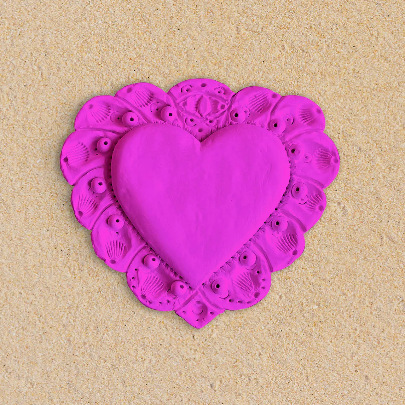 Amelia Corvino Scultura Da Parete Milagros Cuore Sacro In Gesso Rosa Neon> Sculture Da Parete