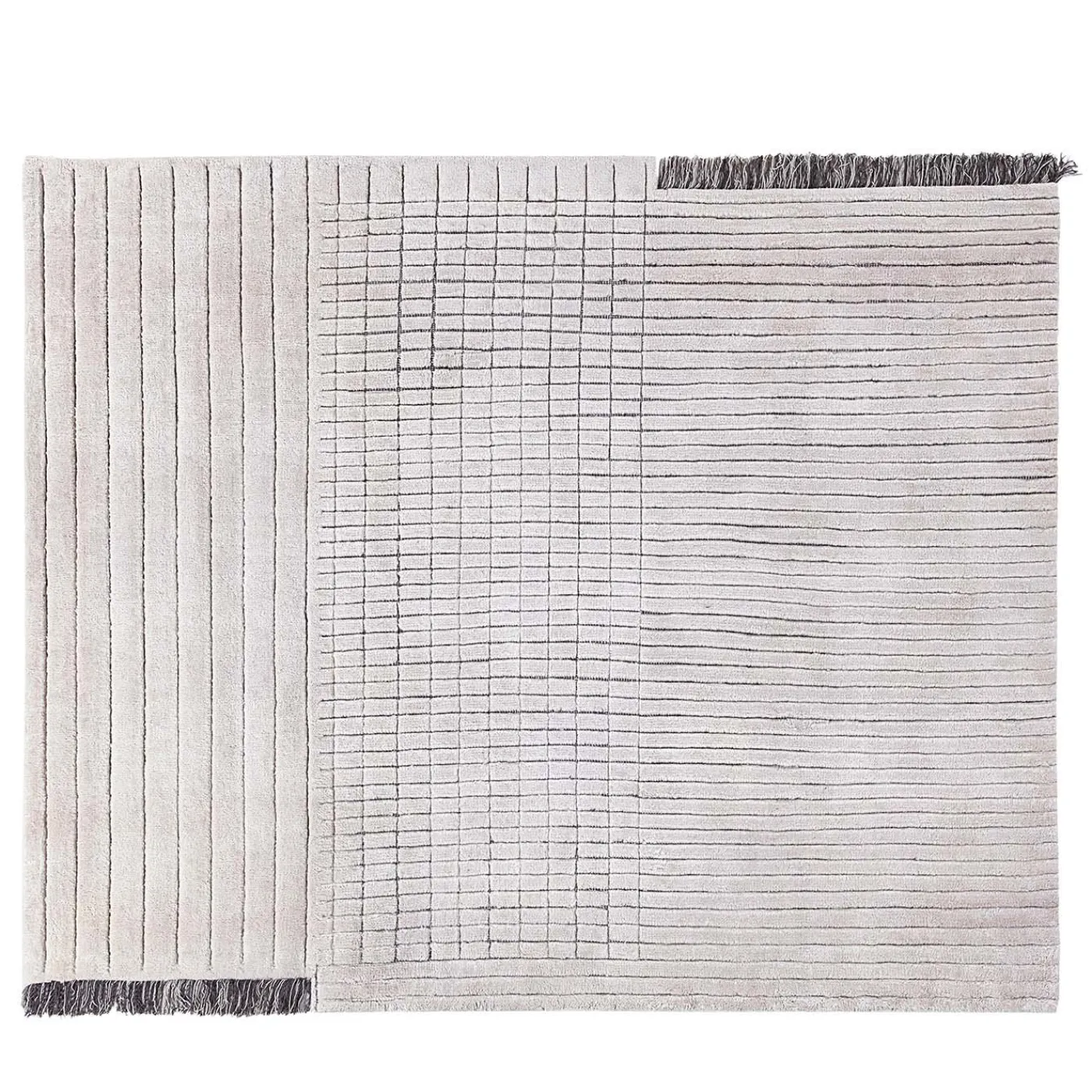 Il tappeto berbero RD Grid racconta una storia ancestrale che mescola perfettamente etnicità e contemporaneità. Realizzato in pregiata lana indiana annodata a mano, questo pezzo si adatta perfettamente alle zone living grazie al caratteristico disegno di linee rette che si incrociano creando una griglia unica e perfetta. Il tappeto misura 300 x 250 cm. Sono disponibili altre misure, chiedere al Concierge per i dettagli.
