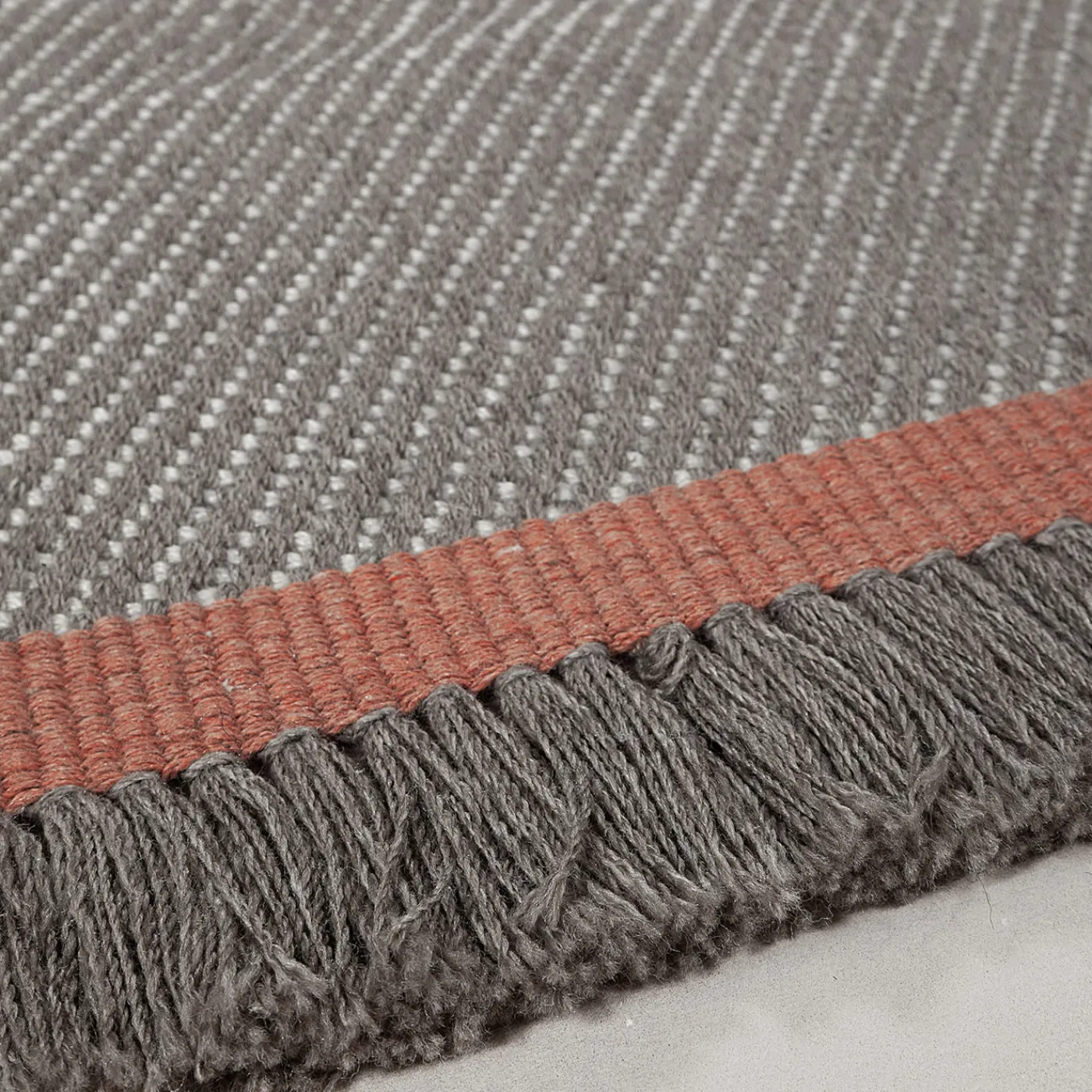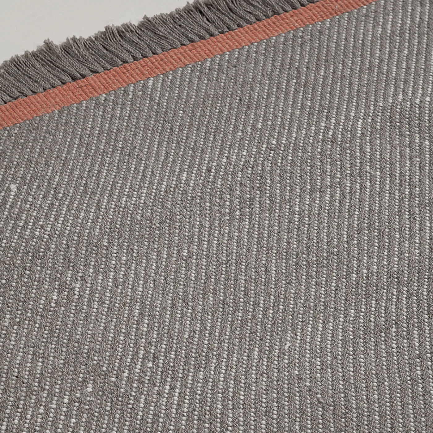 Realizzato a mano con precisione, Sesamo è caratterizzato da un’elegante trama diagonale in un’armoniosa tonalità tortora. Le fasce di contrasto aggiungono un tocco raffinato, sottolineando il suo design strutturato ma morbido. Perfetto complemento per spazi interni ed esterni, la sua composizione equilibrata favorisce un senso di armonia e raffinatezza, mentre le fibre di PET riciclato garantiscono una scelta sostenibile e duratura. Adatto sia per l’esterno che per l’interno.