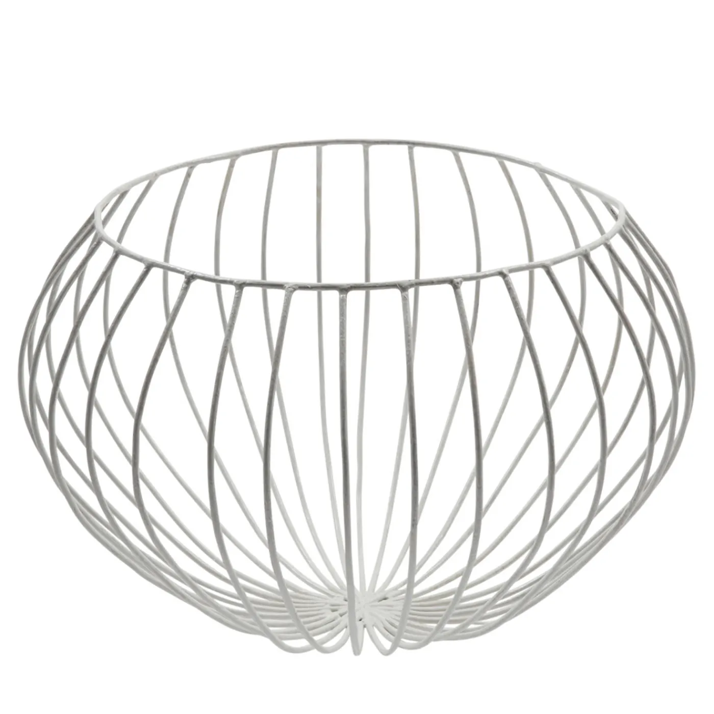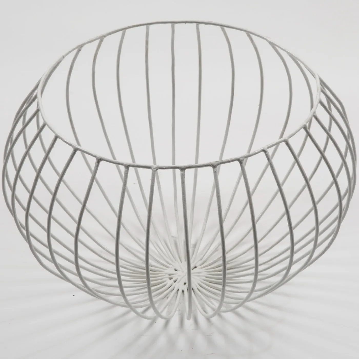 Gustoso vaso bianco a forma di cupola di Sciortino. Il pezzo è realizzato in filo di ferro zincato, con barre di ferro a raggiera che sporgono sul bordo e si piegano sui lati, creando così linee morbide che ricordano i passi di danza. Per i mobili in legno si consiglia una manutenzione occasionale con lucidatura a cera.