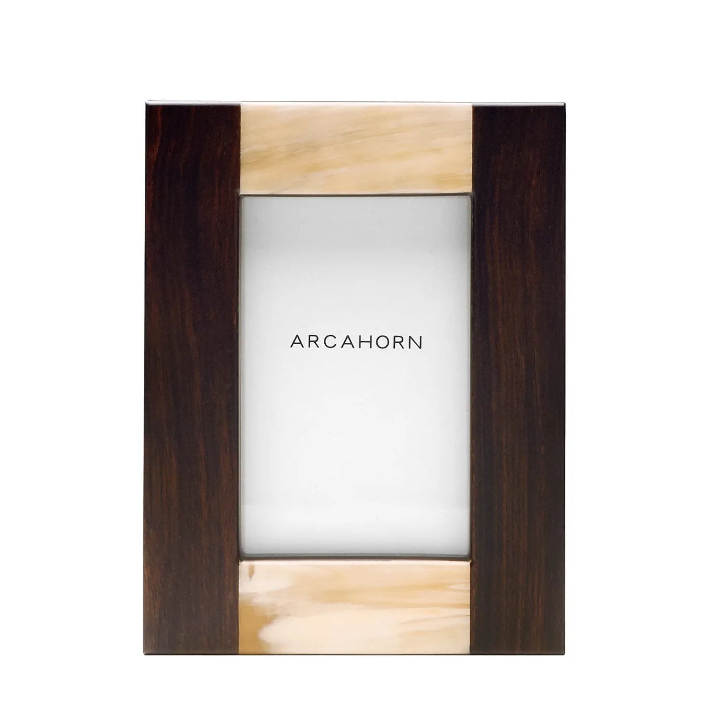 Cornice fotografica 16 x 21 cm, adatta a ospitare immagini 10 x 15 cm. La finitura opaca abbina sezioni in corno piccolo e inserti in ebano Amara, creando un raffinato gioco di contrasti tra texture naturali. Le proporzioni armoniose e il design sobrio la rendono perfetta per ambienti sia contemporanei che classici, offrendo un supporto elegante per valorizzare ricordi e momenti preziosi.