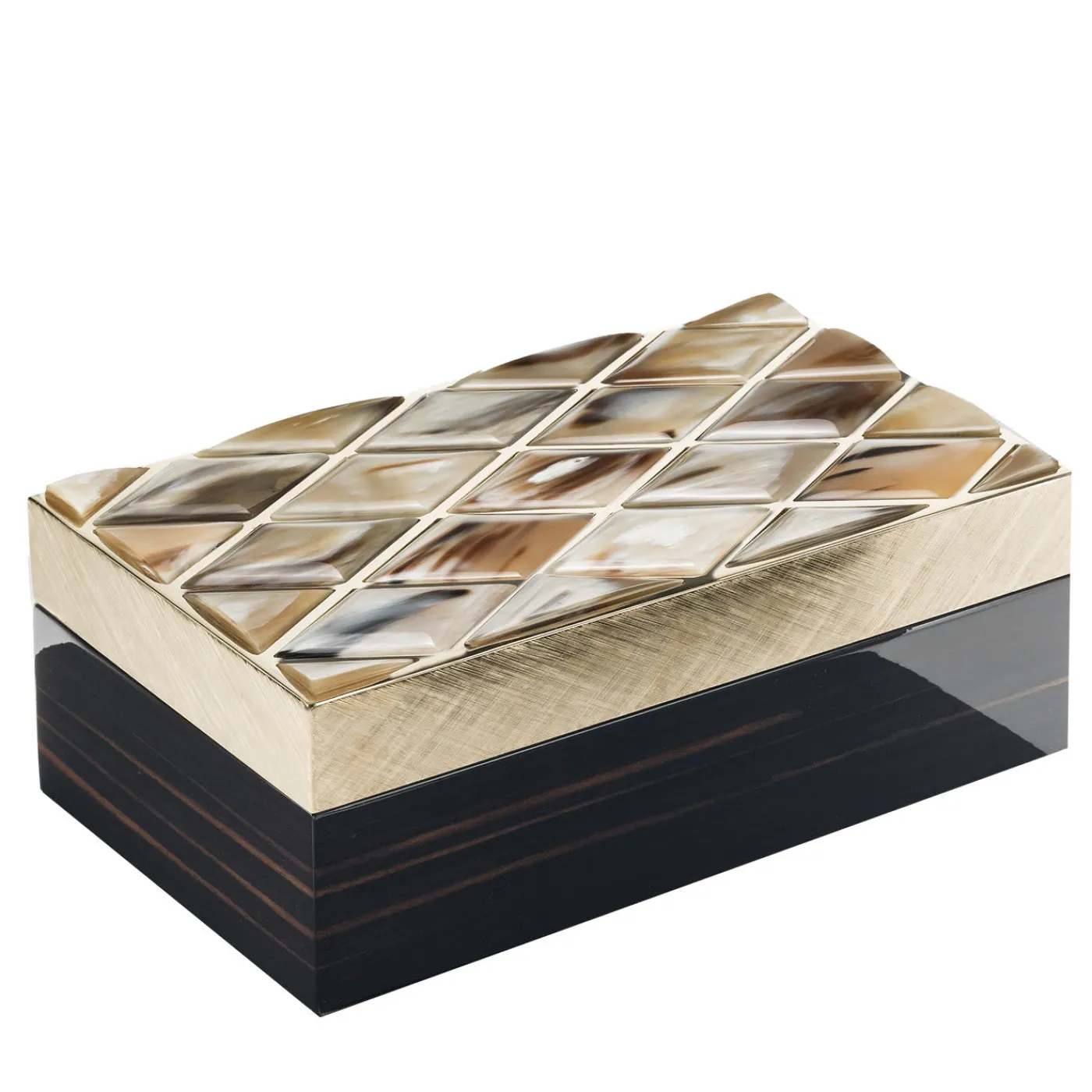 Il Fedora Box è uno splendido cofanetto in ebano lucido con piano in ottone placcato oro 24k inciso a mano e inserti in corno di toro. Disegnata da Filippo Dini, la scatola misura 21 x 13 cm con un’altezza di 8 cm. Un accessorio davvero bello per conservare oggetti preziosi, che aggiungerà classe e stile a un comò o a un tavolo.