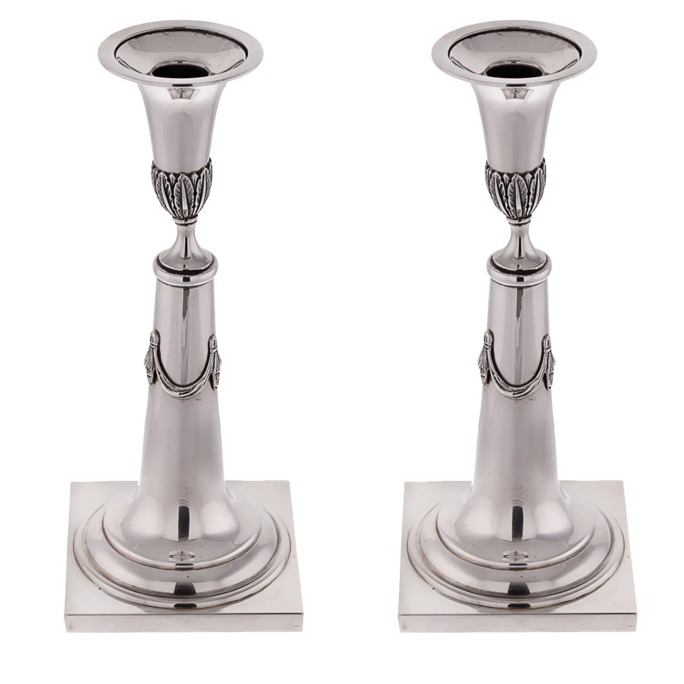 Coppia di candelieri in argento 925 cesellati a mano dalla storica bottega argentiera fiorentina Pagliai. I pezzi sono modellati su un originale austriaco del 1860, una commissione privata la cui eleganza ha spinto gli argentieri Pagliai a replicarlo per altri clienti e collezionisti.