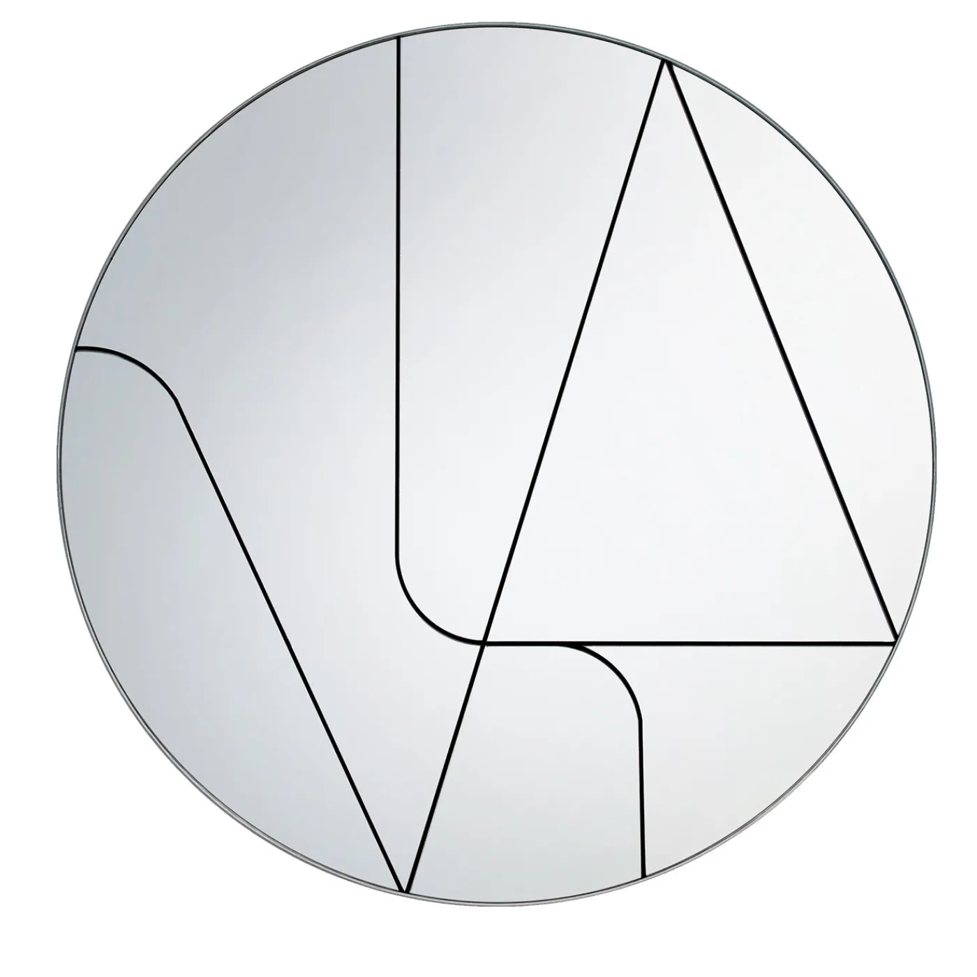 Parte della Collezione Insula (“isola” in latino), questo elegante specchio è una rappresentazione astratta del paesaggio insulare del Mar Mediterraneo che si aggiunge in modo sofisticato a un arredamento contemporaneo. La sua silhouette rotonda è ornata da una serie di linee asimmetriche che definiscono lo spazio e aggiungono un senso dinamico di movimento. La base in legno sostiene i diversi elementi a specchio, tagliati e assemblati a mano in un telaio di alluminio.
