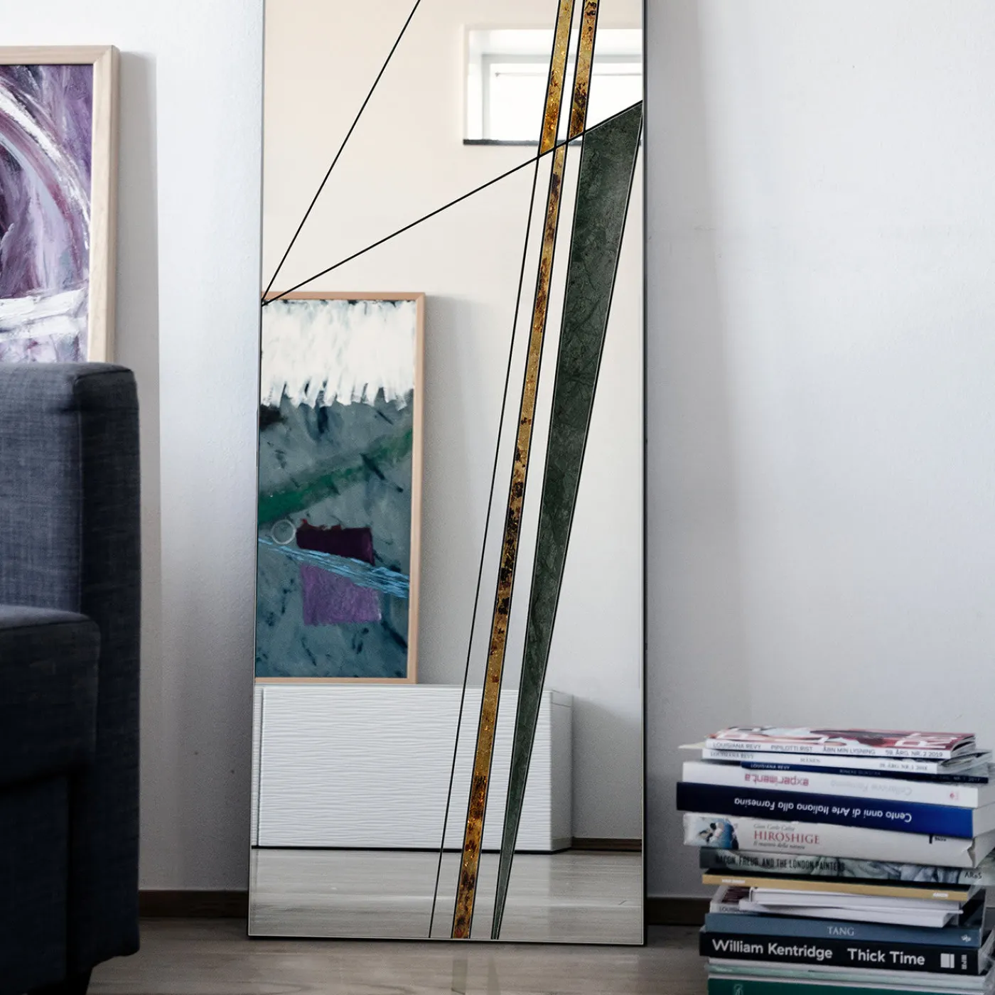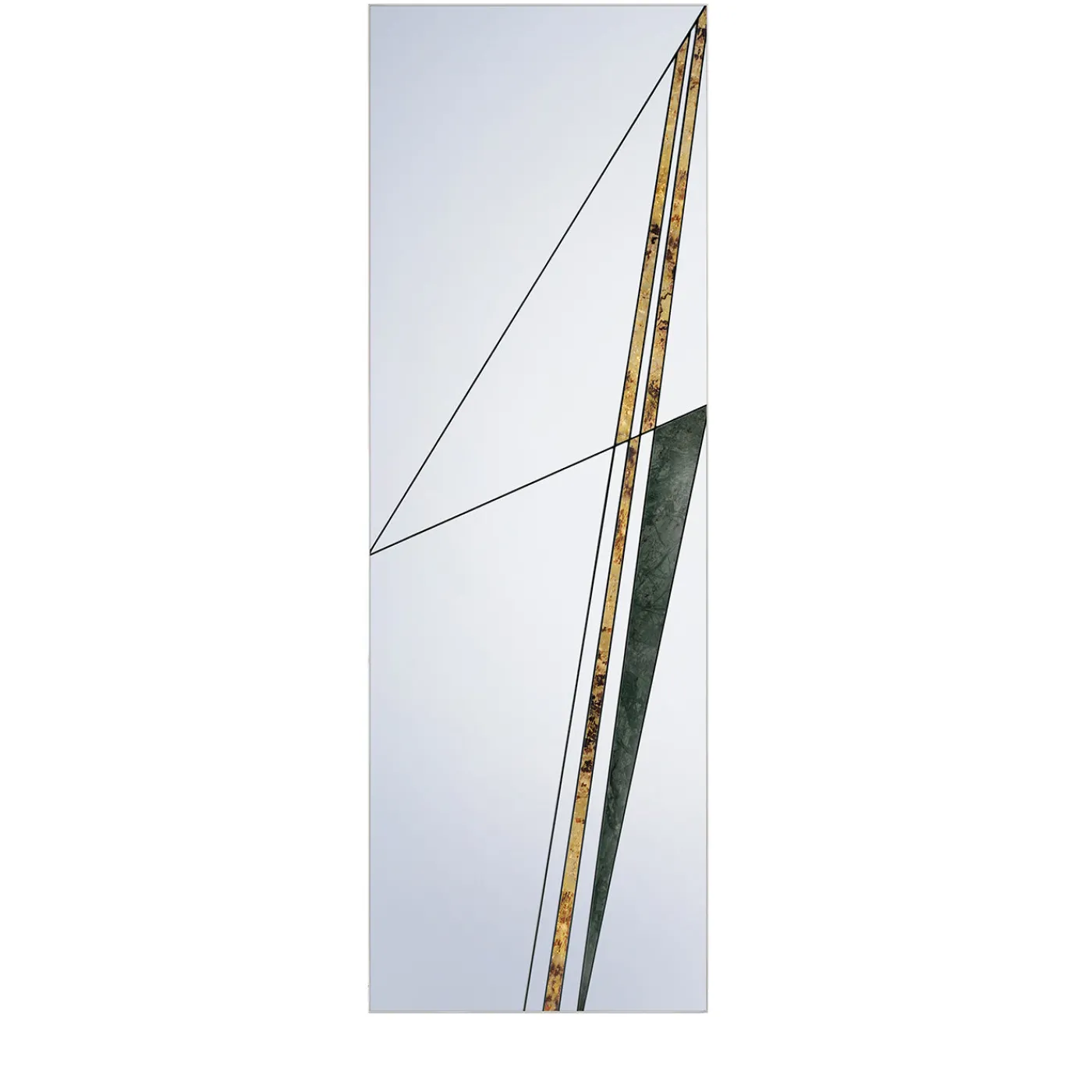 Un’audace serie di linee si interseca sulla superficie di questo splendido specchio, creando un’interpretazione astratta della rete stradale dell’epoca romana. Questo splendido design è realizzato a mano su una base in legno, unendo elementi in vetro specchiato a una rifinitura in alluminio, oltre a inserti in marmo verde del Guatemala e ottone con finitura anticata applicata a mano. Il risultato è sofisticato e dinamico e aggiunge un tocco unico agli interni contemporanei.