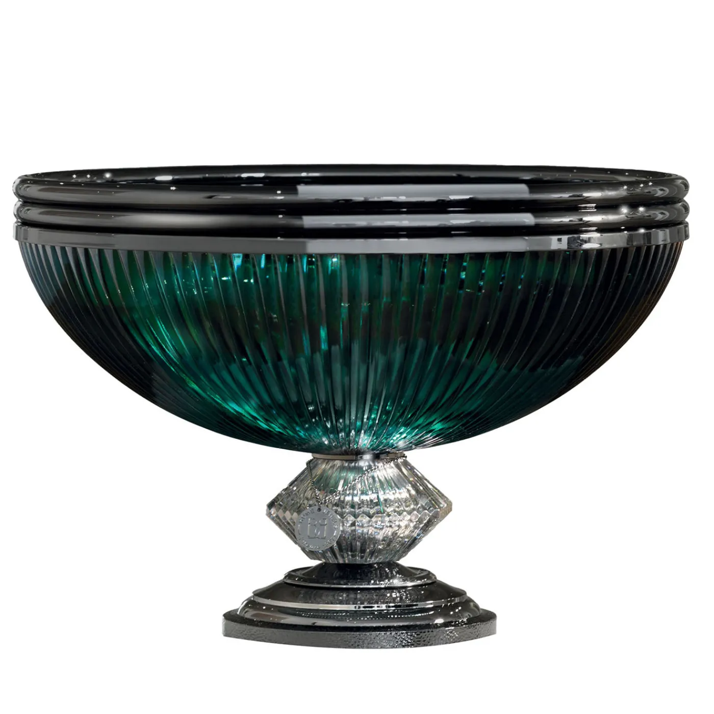 La Coppa Boccadirosa presenta un design raffinato e contemporaneo ispirato all’equilibrio tra spirito e sensi della collezione Boccadoro. Mette in mostra una ciotola di dimensioni medie in cristallo argentato con dettagli in bronzo cesellato intricati, rifiniti con una galvanizzazione in argento. Il pezzo riflette una fusione sofisticata di forme moderne ed elegante opulenza, rendendolo un oggetto decorativo distintivo per interni domestici raffinati.