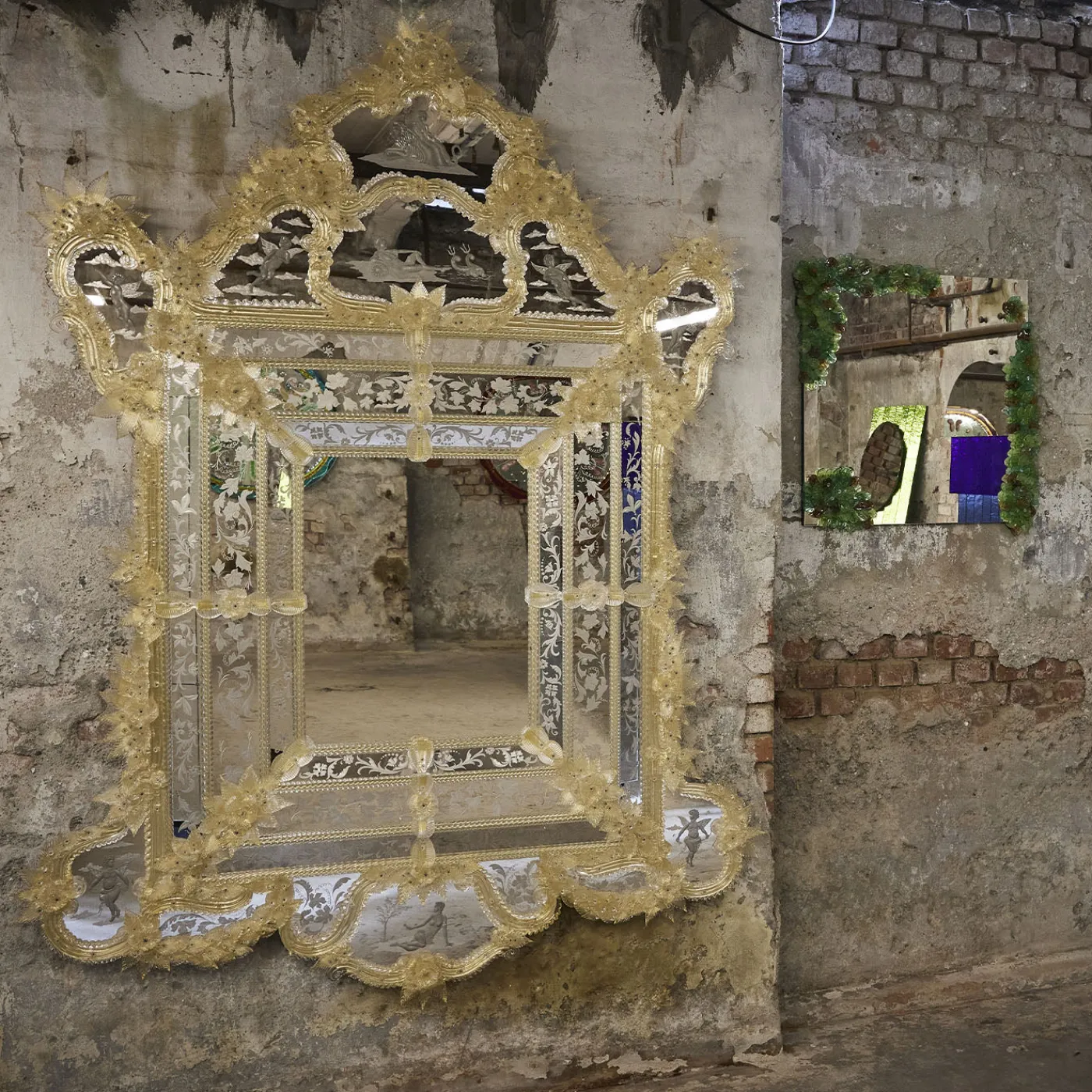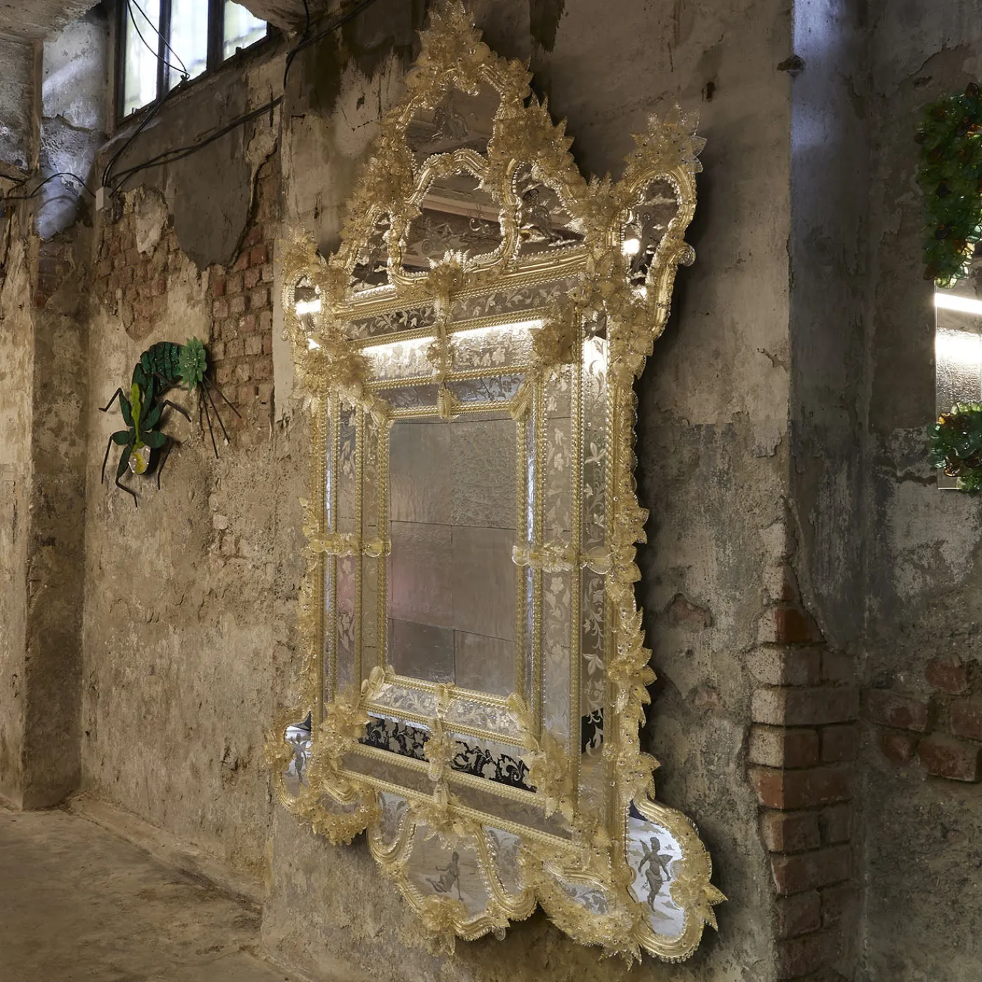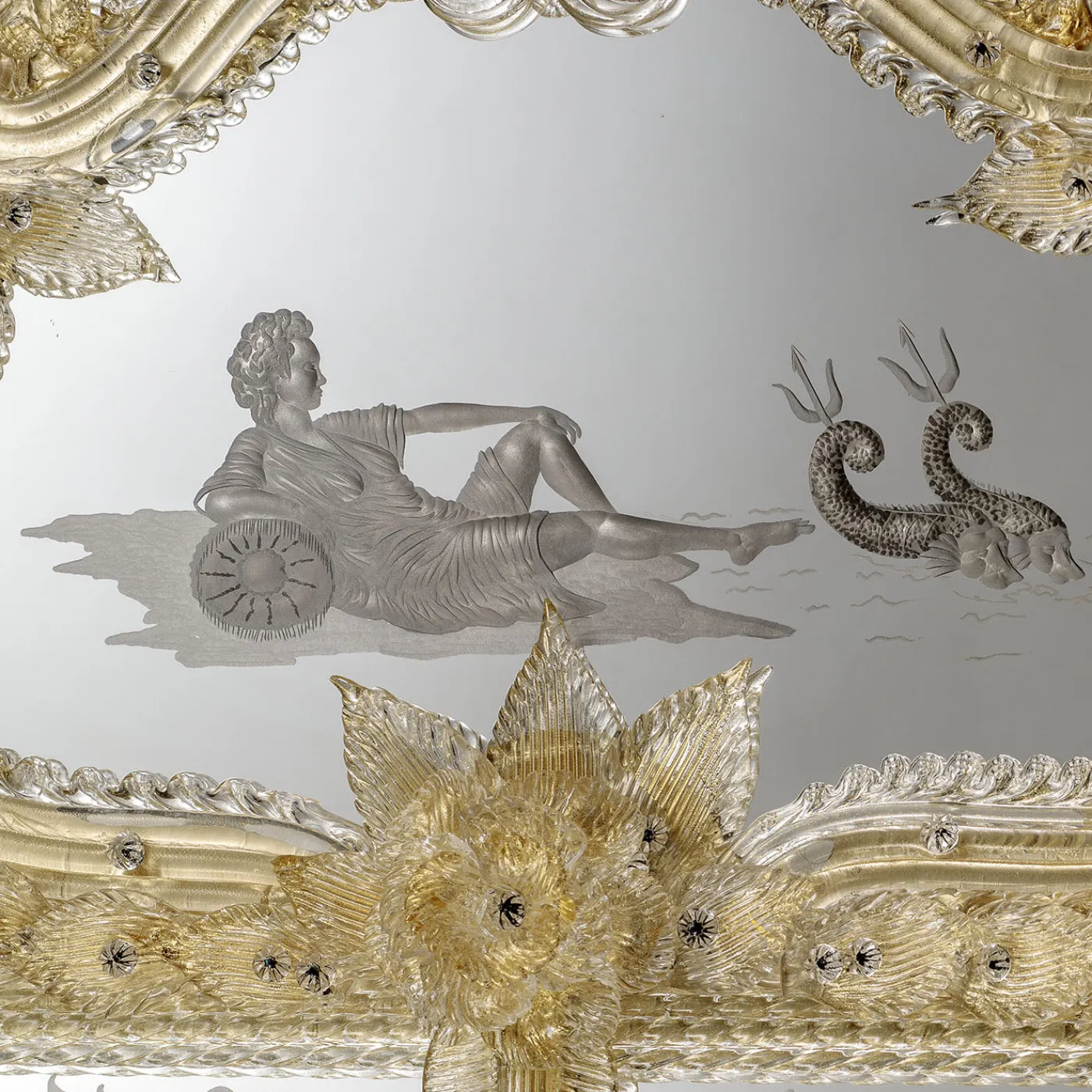 Rex cattura l’opulenza della Venezia del XVII e XVIII secolo attraverso intricati dettagli incisi a mano e argentatura artigianale. Arricchito con delicati elementi in vetro di Murano, tra cui fiori, foglie, canne e riccioli adornati con foglia d’oro 24kt, ogni pezzo di vetro è accuratamente realizzato per evocare un’eleganza storica. Questo design iconico, parte dell’archivio Barbini, è stato presentato in mostre e collezioni curate, riflettendo una ricca eredità culturale e maestria artistica.