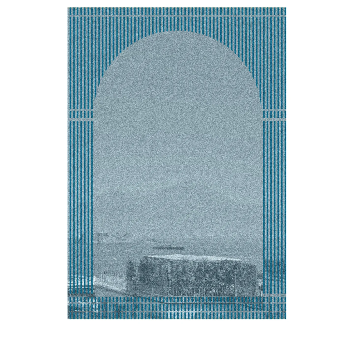 Parte di un trittico tessile dalla duplice funzione di coperta e arazzo, con ogni città visualizzata come un paesaggio visto da trifore appartenenti a diversi stili architettonici. Tessuto jacquard con tecnica piquè. 100% lana merino extra fine. 19,5 Micron.