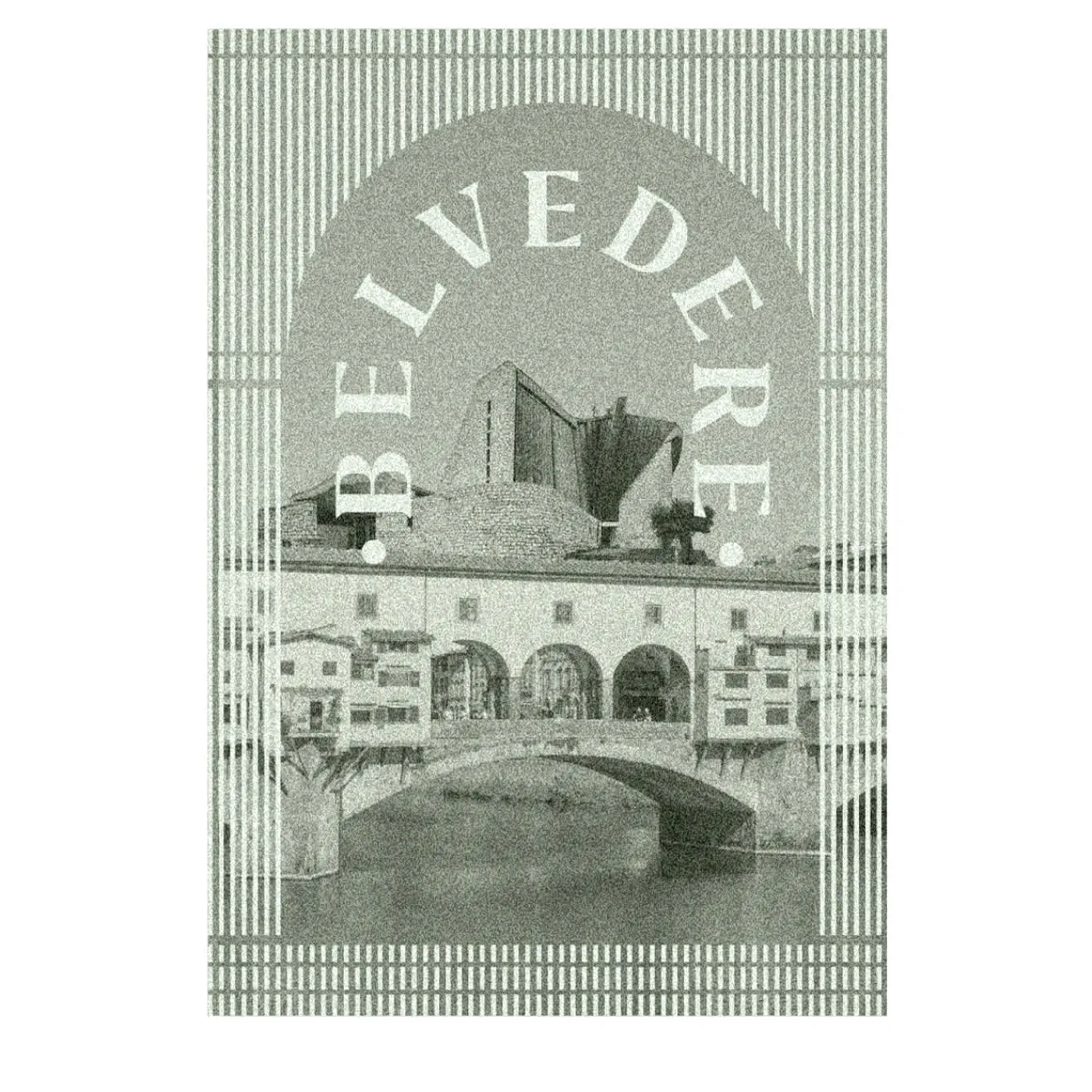 Parte di un trittico tessile dalla duplice funzione di coperta e arazzo, con ogni città visualizzata come un paesaggio visto da trifore appartenenti a diversi stili architettonici. Tessuto jacquard con tecnica piquè. 100% lana merino extra fine. 19,5 Micron.