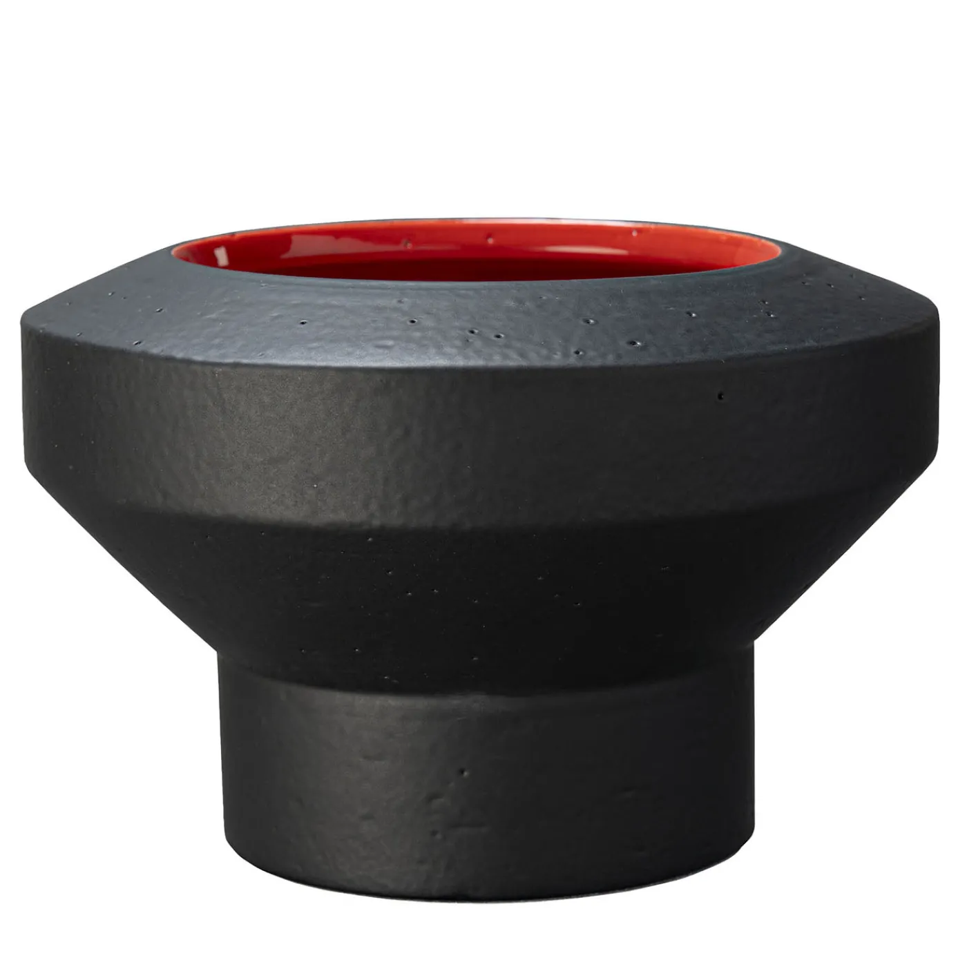 Contemporaneo e classico al tempo stesso, questo centrotavola è caratterizzato da linee geometriche nette e da una finitura bicolore che sono il marchio di fabbrica della collezione Tribe, disegnata da Arik Levy George per Bitossi nel 2007. Interamente tornito al tornio con argilla refrattaria bianca, questo centrotavola con piedi poggia su una base cilindrica e vanta una splendida doppia finitura con esterno nero opaco e interno smaltato rosso lucido che esalta l’eleganza senza tempo del pezzo. Fa parte di una serie limitata di 99 pezzi.