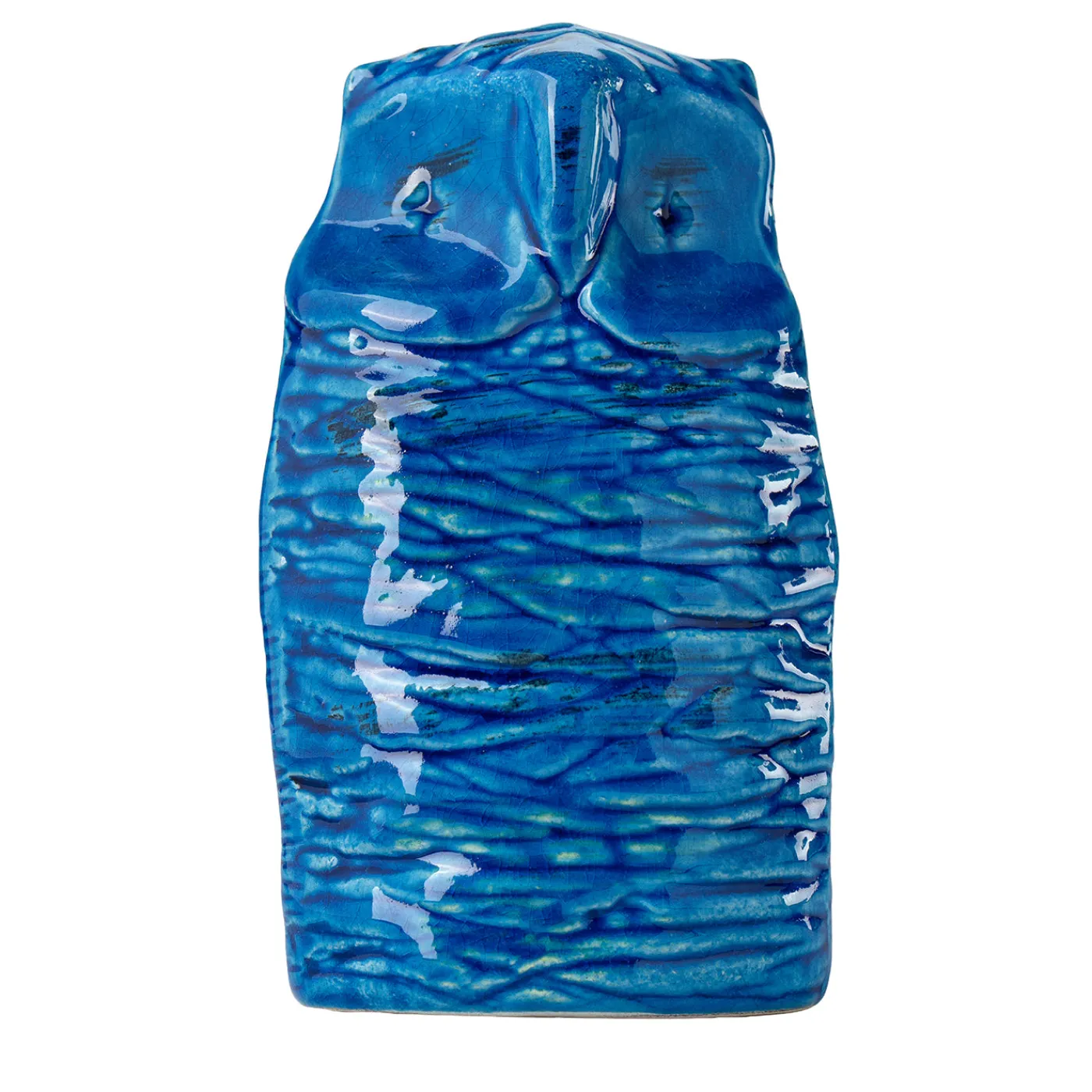 Una raffinata statuetta di gufo della collezione Rimini Blu, modellata in argilla bianca refrattaria con una forma pressata. La superficie è decorata con distintivi motivi incisi manualmente utilizzando timbri, tutto sotto una vibrante smalto blu lucido che mette in evidenza le intricate texture e la profondità del design. Questo pezzo in ceramica combina incisioni artistiche con una brillante finitura cristallina per creare un accento decorativo straordinario.