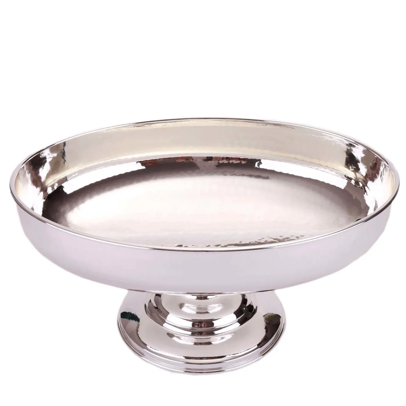 Questa ciotola con piede argentato sarà altrettanto splendida come centrotavola per contenere la frutta su un tavolo da pranzo o su una consolle d’ingresso, esponendo un bouquet di fiori dai colori pastello. Un’elegante lucentezza avvolge l’intero pezzo, sollevato su un piedistallo rotondo a gradini che culmina nella generosa ciotola ovale. Adatta ad arredamenti sia moderni che classici, questa ciotola vanta un design senza tempo che animerà la tavola sia in occasioni speciali che occasionali.