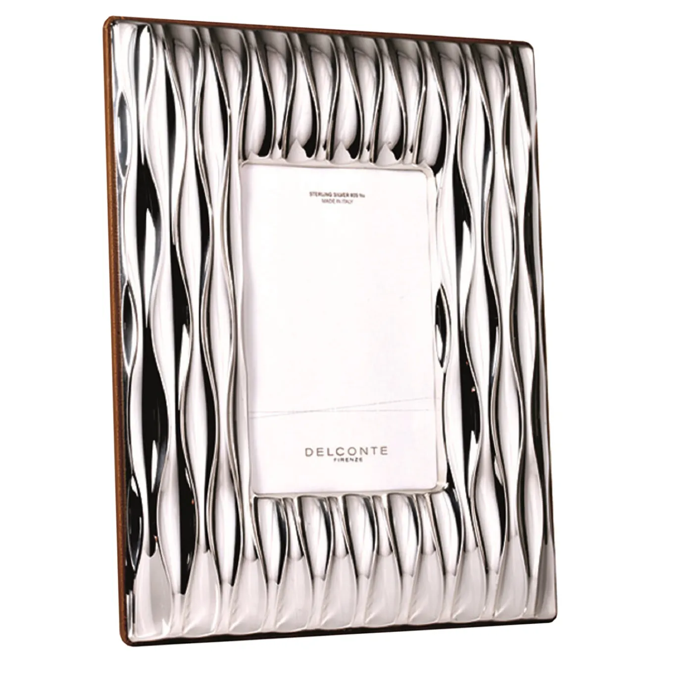 Eleganti onde conferiscono una sorprendente qualità testuale a questa cornice in argento Sterling 925, i cui bordi armoniosi permettono alla luce di riflettersi creando una splendida aureola intorno a momenti memorabili congelati nel tempo. Con il retro rivestito in pelle naturale, il pezzo si adatta a foto di 13×18 cm con i suoi lati larghi 6 cm. Si prega di consultare il Concierge per conoscere i prezzi delle varianti che si adattano a fotografie di 9×9 e 10×15 cm.