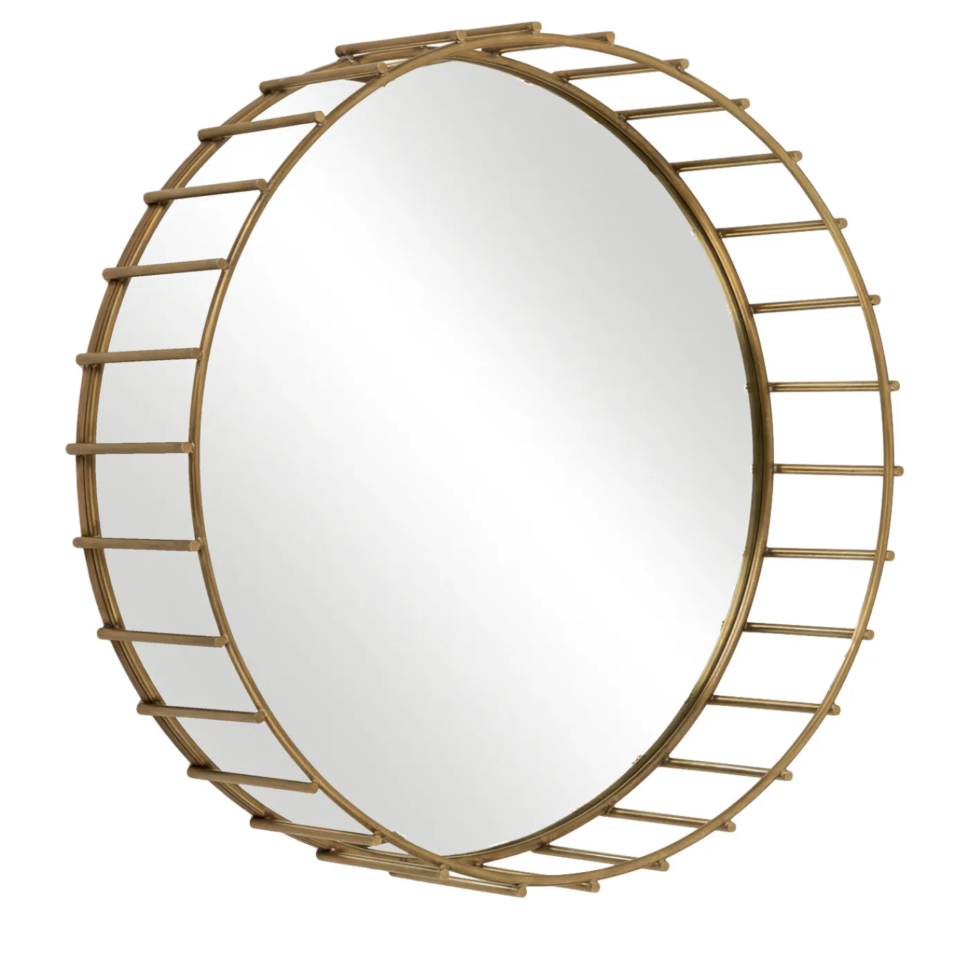 Questo elegante specchio fa parte della collezione Cage e può essere abbinato alle lampade e al tavolo della stessa collezione per arredare un ingresso sofisticato o qualsiasi altra stanza della casa. Abbinato ad altri elementi della stessa serie o da solo, questo specchio rotondo si farà notare grazie alla sua struttura in ottone che presenta una cornice rotonda da cui partono una serie di aste corte che si collegano a una seconda cornice rotonda, creando effetti unici e interessanti.