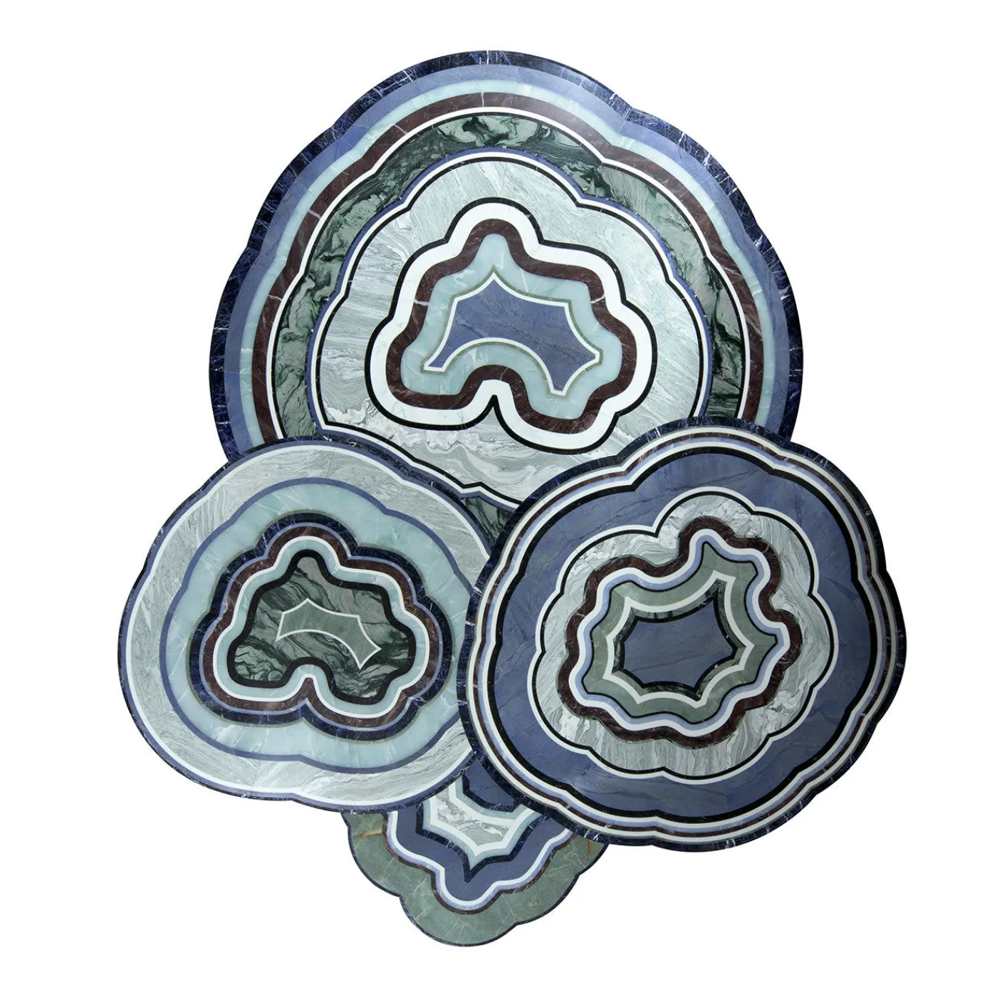 Questo splendido tappeto d’accento in marmo di Patricia Urquiola è composto da quattro sezioni rotonde di diverse dimensioni in marmo e onice, disposte in modo da formare un pezzo unico. Le varie tonalità di blu e di verde saranno un’aggiunta rilassante a qualsiasi spazio che accolga questo tappeto grazie alla sua texture sottile.
