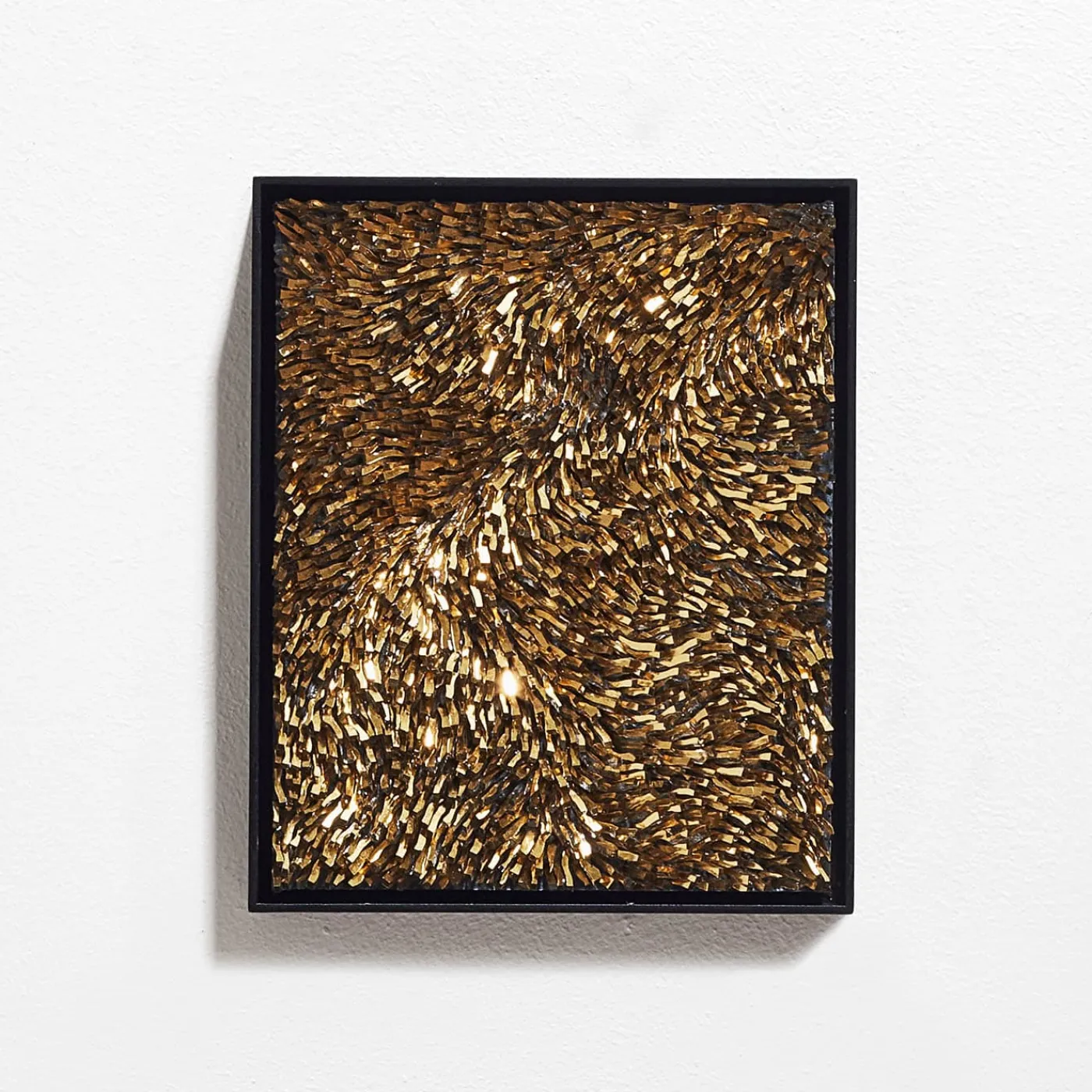 Una suggestiva collezione di cinque pezzi realizzati in pasta di vetro con foglia d’oro, ossido colorante e malta su pannelli di legno multistrato e ferro. Ogni pezzo ha dimensioni diverse: Pezzo #1 (80 x 10 x 10 cm), Pezzo #2 (15 x 5 x 20 cm), Pezzo #3 (23 x 5 x 28 cm), Pezzo #4 (60 x 5 x 60 cm) e Pezzo #5 (23 x 5 x 28 cm). Questo raffinato set combina materiali raffinati e design moderno, rendendolo un’aggiunta perfetta a qualsiasi interno contemporaneo o sofisticato.