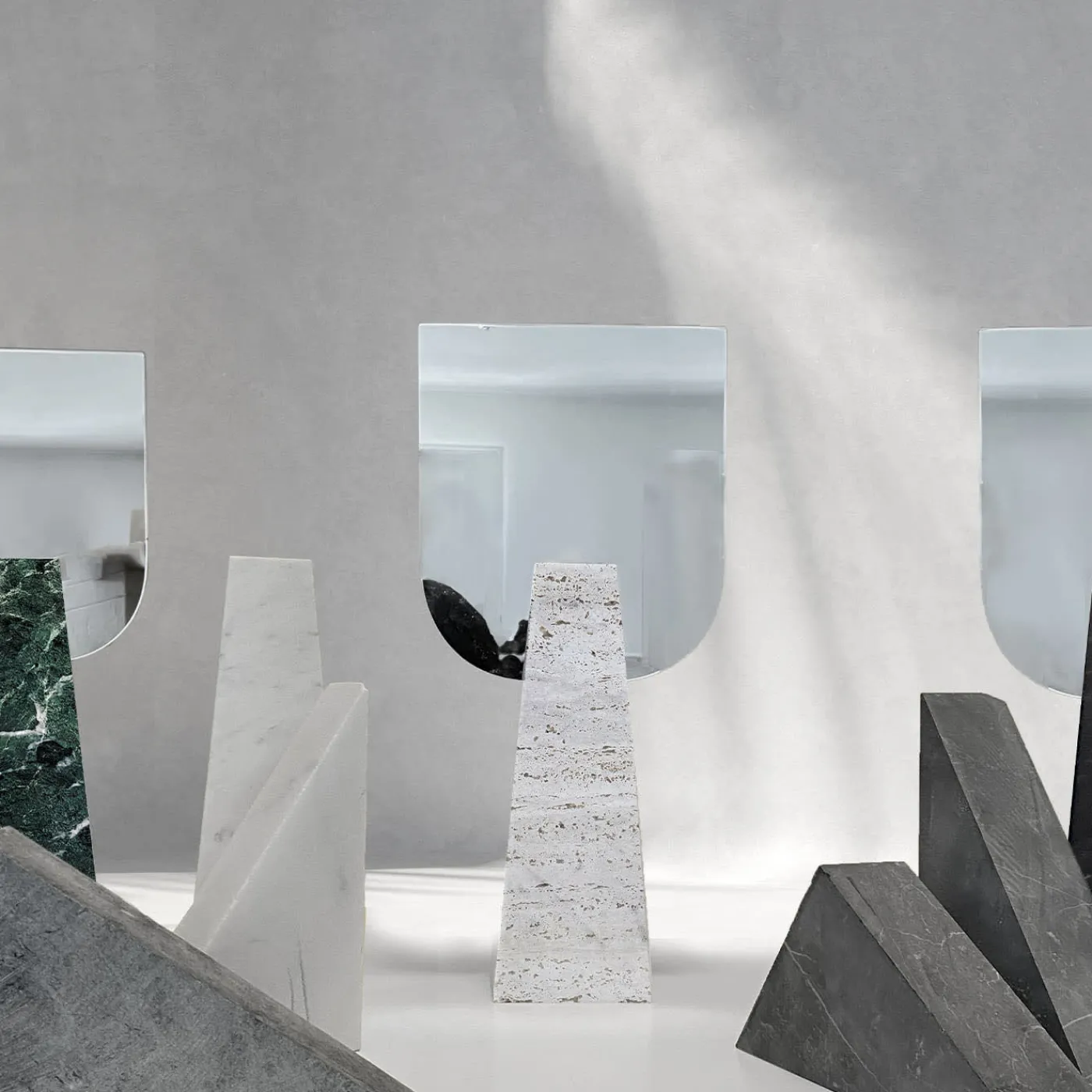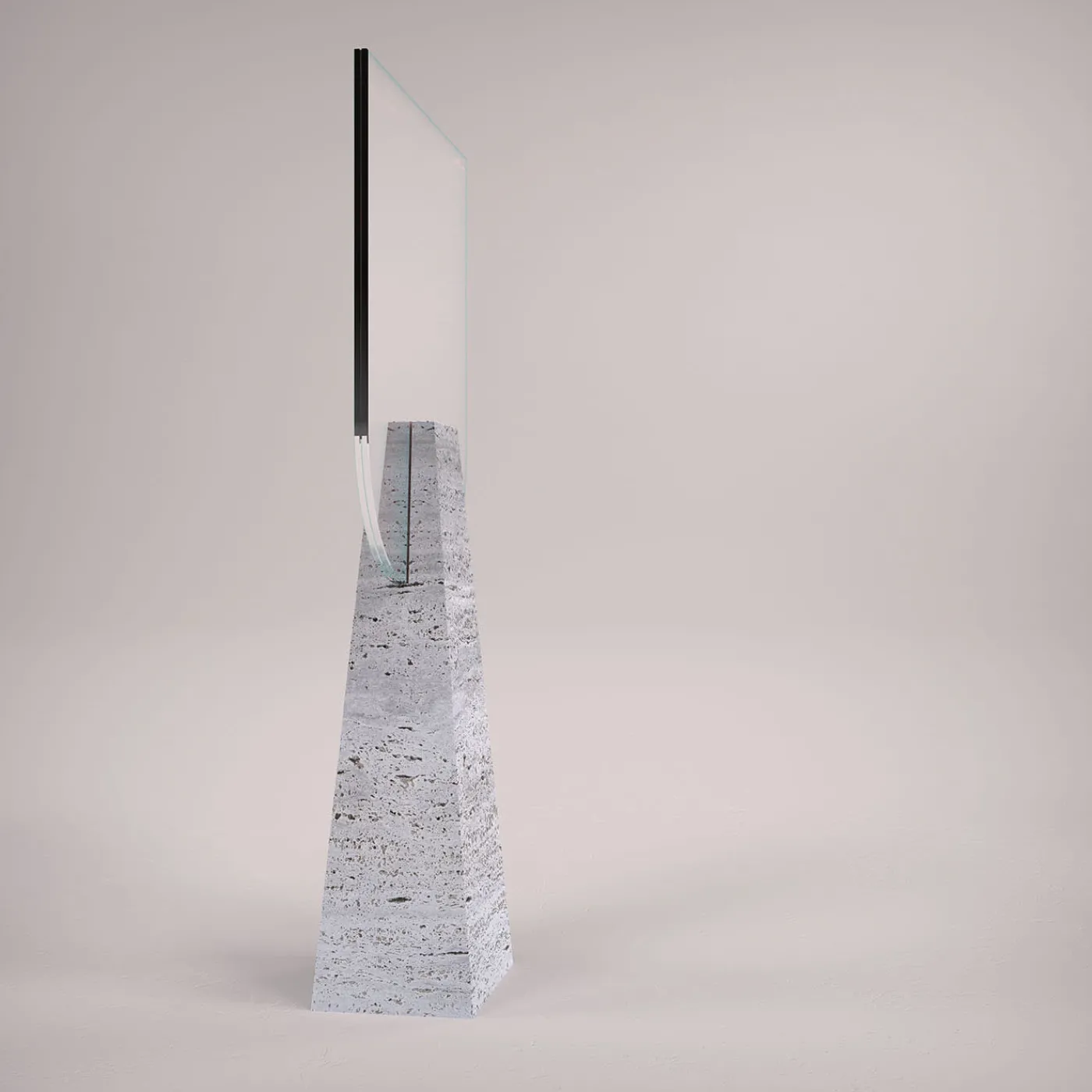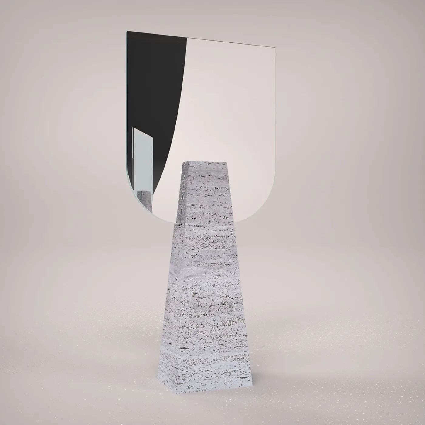 Attualizzazione dell’incontro tra l’estro contemporaneo e l’immaginario neoclassico, questo specchio da tavolo si fa notare per il suo rigoroso aspetto scultoreo. Un robusto blocco di travertino dalla silhouette tronco-piramidale sostiene una coppia di specchi sagomati bifacciali. Ogni pezzo è realizzato su ordinazione; eventuali differenze rispetto all’articolo illustrato sono una testimonianza della sua esclusività.