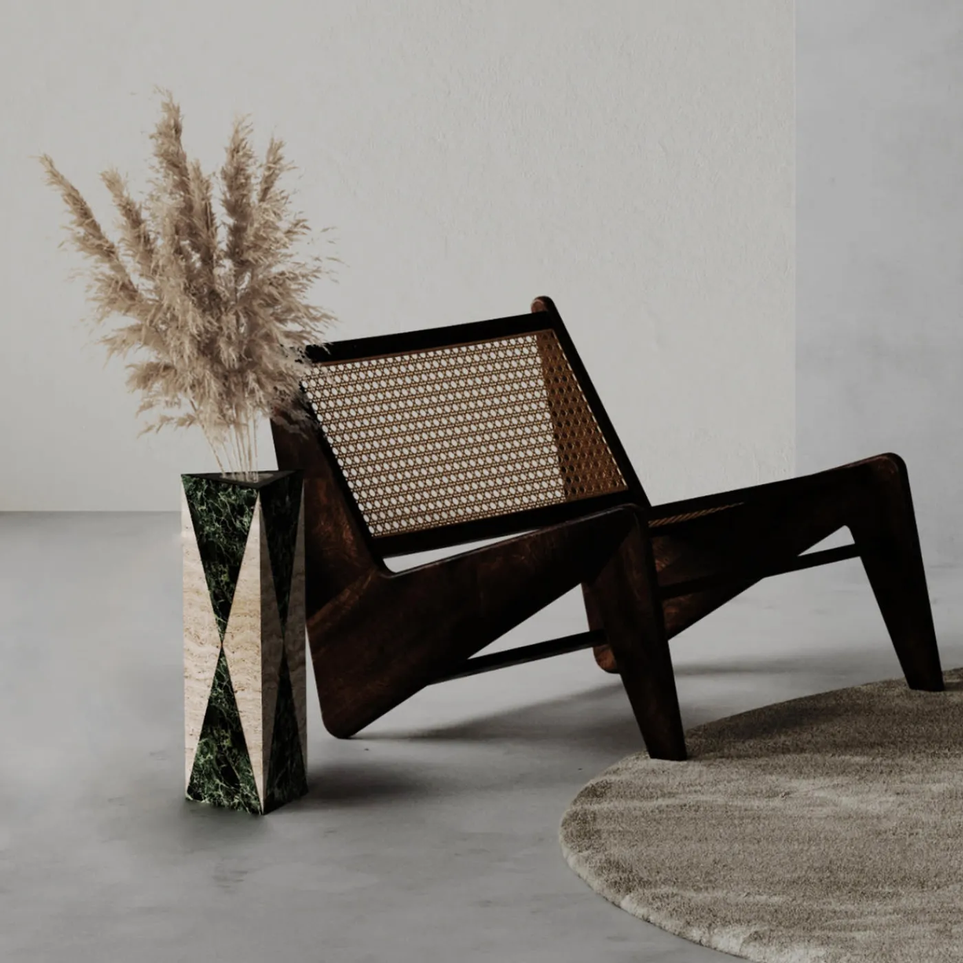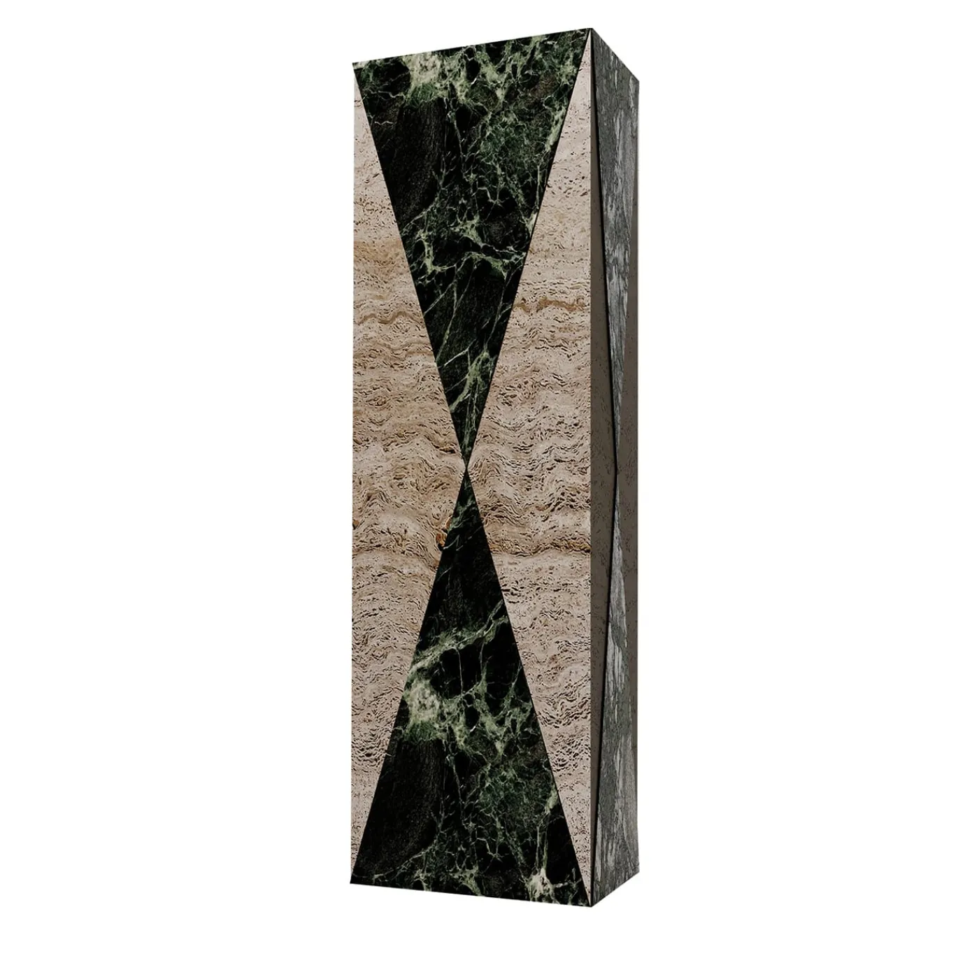 Un gioco di trame intricate e toni contrastanti è alla base del design accattivante di questo vaso in marmo realizzato su ordinazione e numerato. Tagliati secondo un rigoroso schema geometrico, i pregiati inserti Verde Alpi che ornano il corpo in Travertino a poro aperto ne sottolineano ulteriormente l’inconfondibile spirito contemporaneo. Adatto anche alla collocazione a terra, il vaso può essere personalizzato su richiesta al Concierge.
