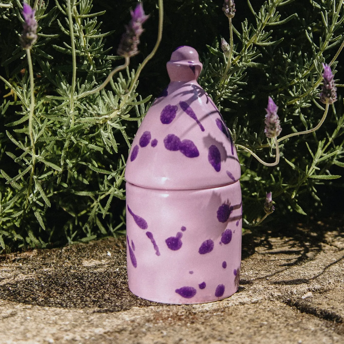 Magnifico omaggio alla Valle d’Itria, la regione meridionale della Puglia, questo portacandele presenta un design elegante ma semplice, ispirato alla caratteristica forma di un trullo, una tipica casa locale. Realizzato a mano in ceramica dipinta di lilla e viola, è completato da una candela di cera di soia fatta a mano che vanta un profumo di lavanda e iris che unisce qualità riscaldanti e avvolgenti. Disponibile in altri colori, questo pezzo viene fornito in cartone riciclato e in una scatola di lino grezzo.