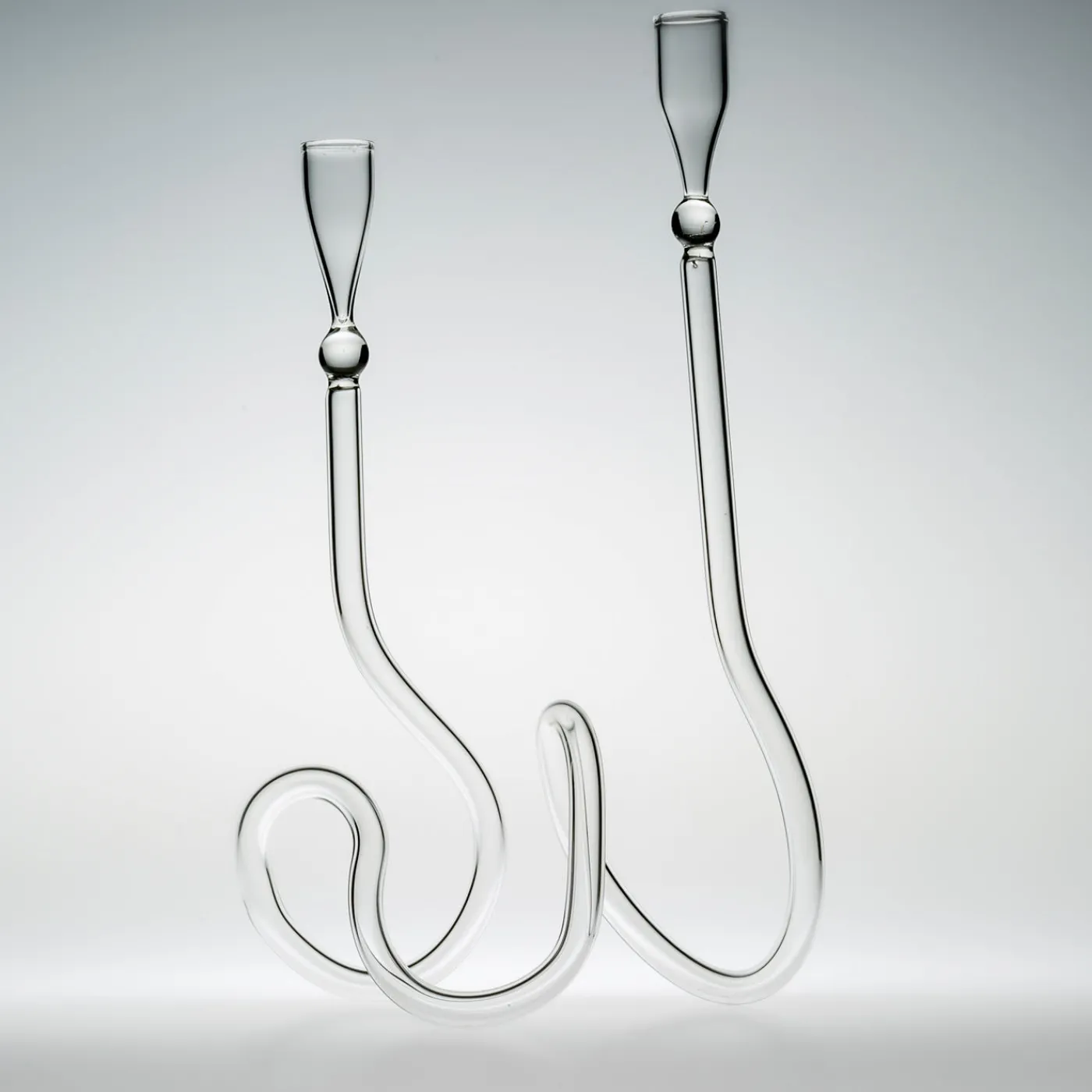 Realizzato a mano a Venezia, questo portacandele è una firma di Casarialto. Interamente realizzato in vetro trasparente, questo portacandele diafano a forma di tubo colpisce per la sua leggerezza, sia in termini di peso che di estetica.