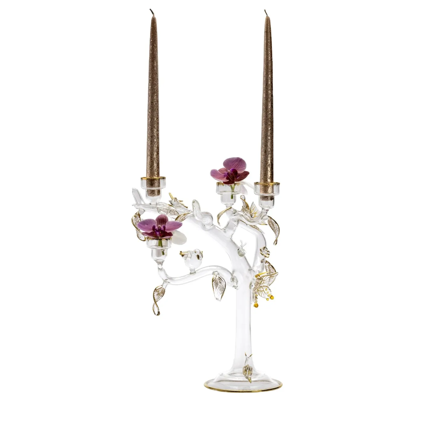 Il portacandele Glass Eden Gold, realizzato a mano a Venezia, è una splendida celebrazione della bellezza della natura. Disegnato da Catherine Urban, questo pezzo evoca il giardino dell’Eden, con foglie delicate e creature di vetro che danzano alla luce delle candele. L’edizione festiva vanta sofisticati accenti dorati, con ogni elemento dipinto a mano in oro 24 carati. Questo portacandele arricchisce qualsiasi arredamento con il suo fascino e il suo design versatile, in grado di ospitare candele e fiori freschi. Ogni pezzo è una creazione unica.
