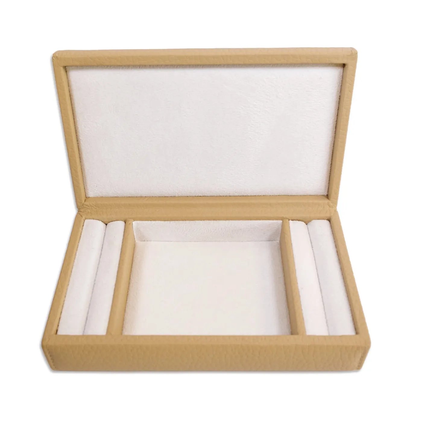 Con una squisita tonalità bianco crema dall’allure accattivante, questo portagioie è rivestito in pelle pieno fiore di alta qualità. Realizzato in legno e con preziosi dettagli in metallo, è rivestito internamente in microfibra, per garantire sicurezza e comfort. Disponibile in altri 13 colori, per maggiori dettagli consultare il catalogo Artemest.