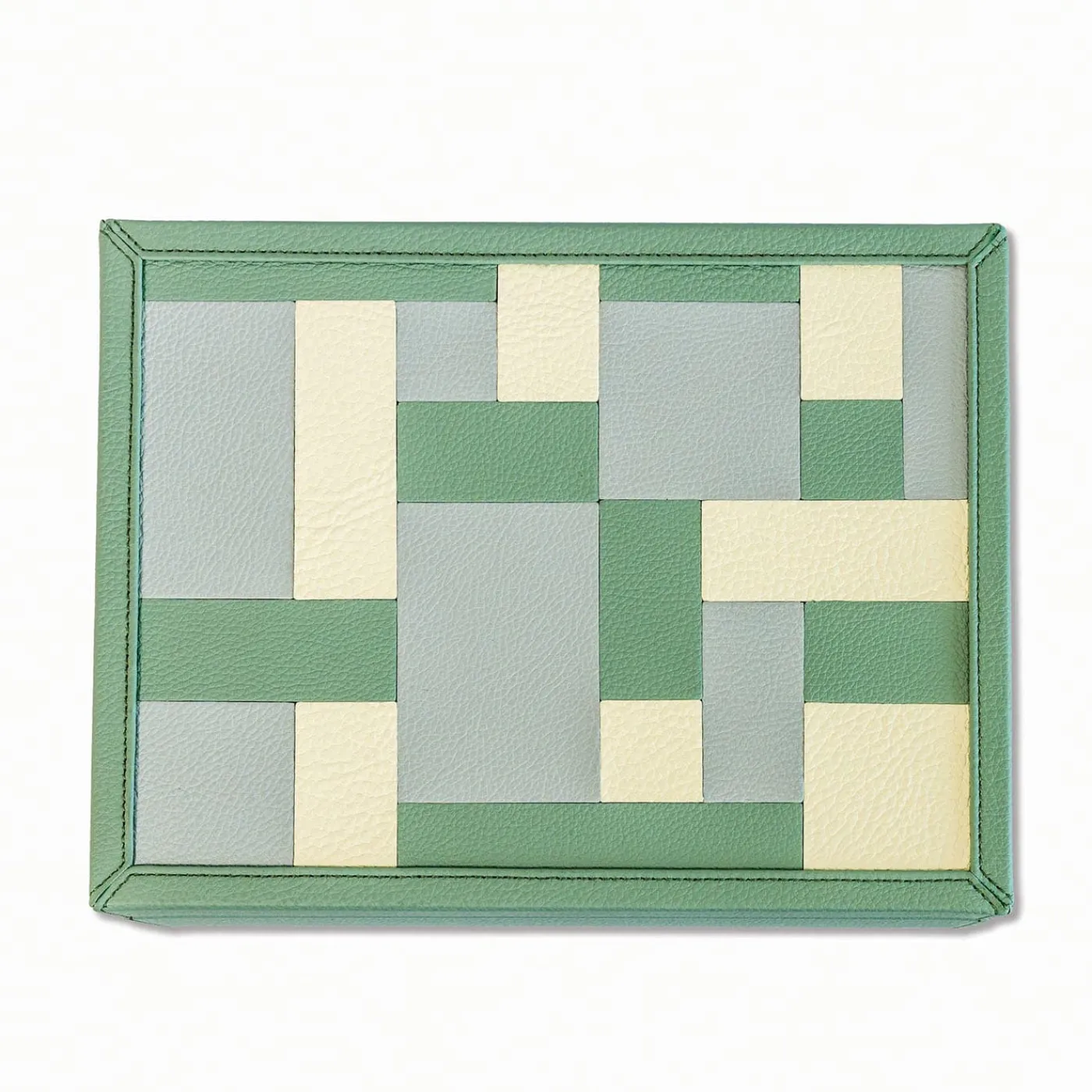 Scatola in legno lavorata a mano e rivestita in vera pelle pregiata e morbida con intarsi fatti a mano sulla parte superiore e tessuto interno in microfibra.