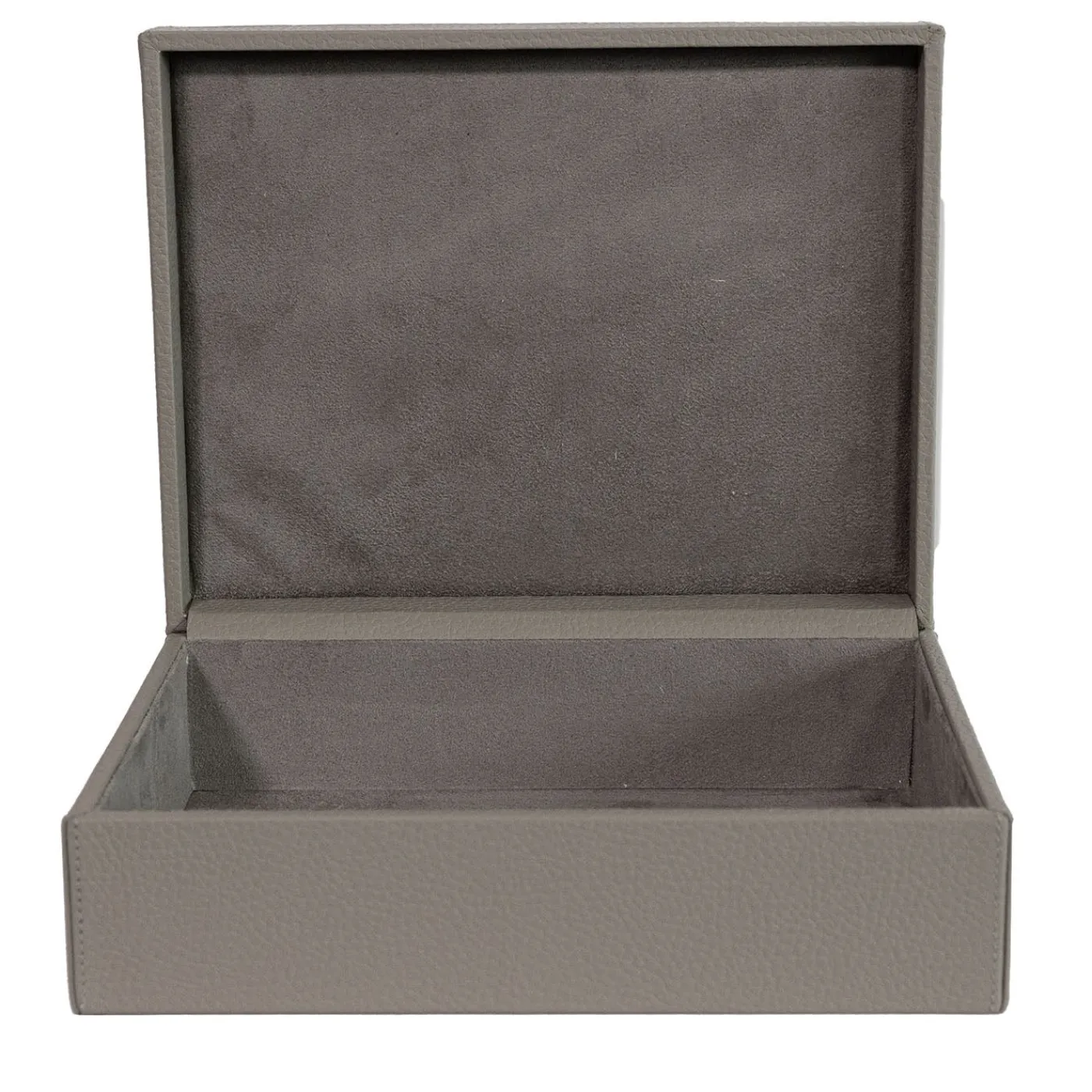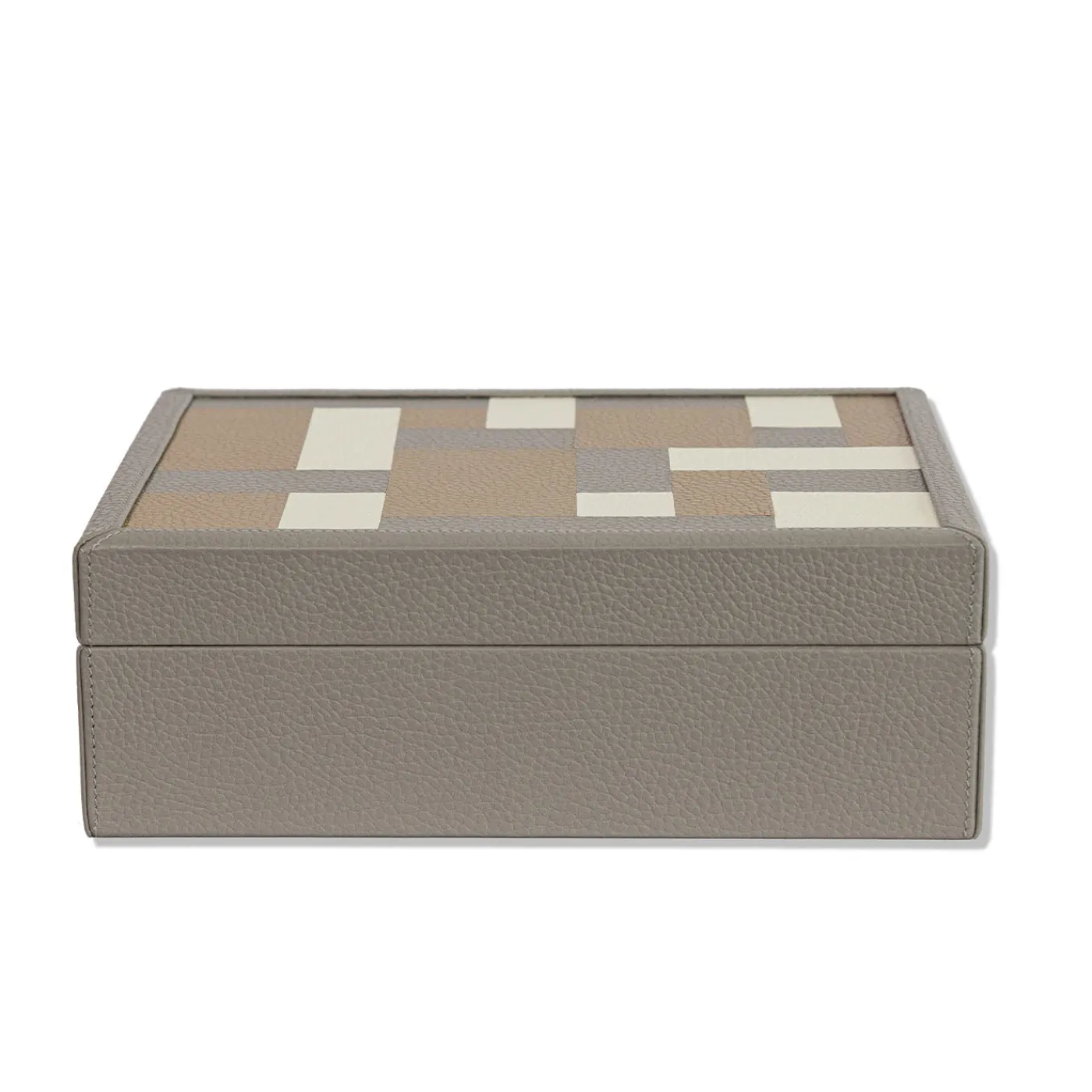 Scatola portaoggetti in legno rivestita in pregiata e morbida pelle, con un delicato intarsio artigianale sul coperchio. L’interno è foderato con tessuto in microfibra per una protezione aggiuntiva. Questa scatola offre una texture sofisticata in una tonalità grigia tenue, ideale per organizzare e valorizzare qualsiasi ambiente domestico. La scatola Ravenna unisce funzionalità e raffinata estetica.
