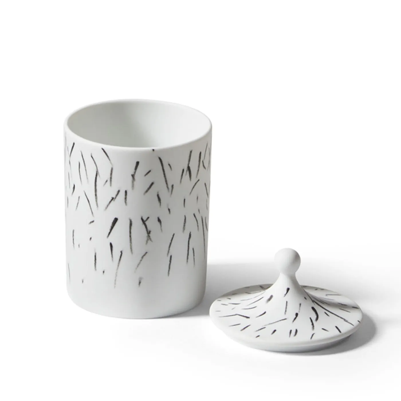 Forme archetipiche selezionate nell’archivio della Manifattura Ginori e reinterpretate da Formafantasma in chiave squisitamente contemporanea contraddistinguono questo prezioso portacandele in porcellana con coperchio. Le pennellate nere sparse sull’esterno – compreso il coperchio con terminale sferico – rivelano la qualità unica del pezzo dipinto a mano, un design raffinato della Collezione Post Scriptum.