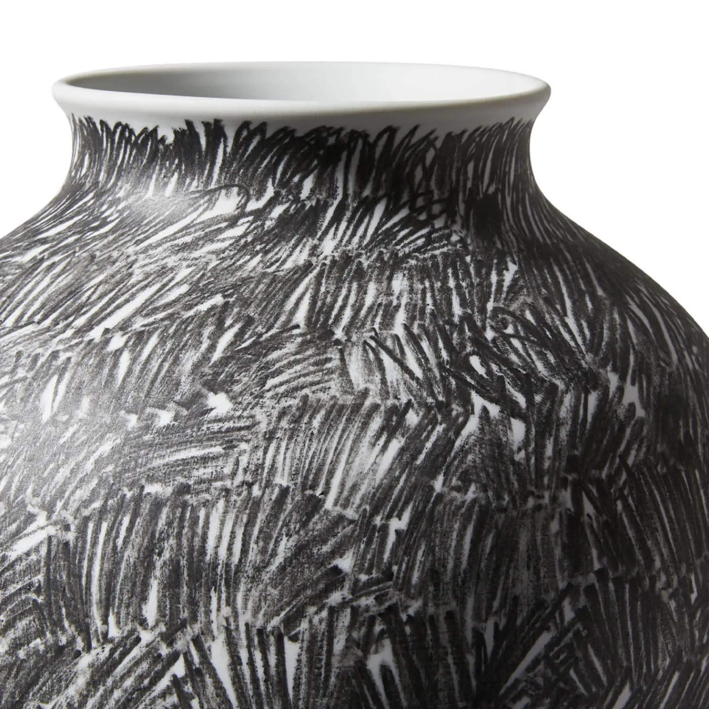 La volontà di reinterpretare in chiave contemporanea forme archetipiche dell’archivio della Manifattura Ginori ha portato Formafantasma a progettare la Collezione Post Scriptum, di cui fa parte questo splendido vaso rigonfio. Realizzato in fine porcellana bianca, è caratterizzato da un intrigante e apparentemente caotico motivo di pennellate nere dipinte a mano che ne attestano l’esclusività.