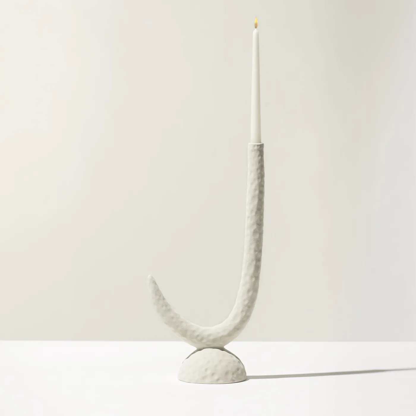 Questo portacandele è un pezzo scultoreo unico, ispirato alle forme organiche dei primi anni Cinquanta e alle composizioni di nature morte di Morandi. Realizzato con la tecnica della colata in stampo e rifinito con una smaltatura opaca e polverosa, la sua superficie evoca la sensazione tattile della terracotta e dei recipienti in rame antico. La sua forma morbida e la palette attenuata lo rendono un elemento perfetto per composizioni ponderate con altri vasi e ciotole, per allestimenti da tavolo curati e di grande impatto.