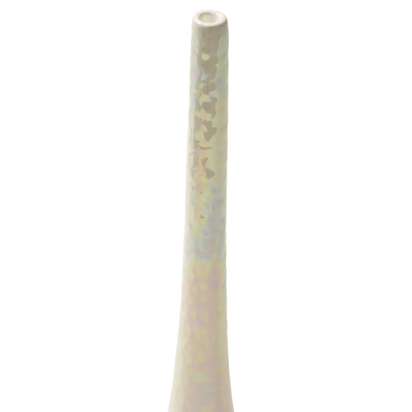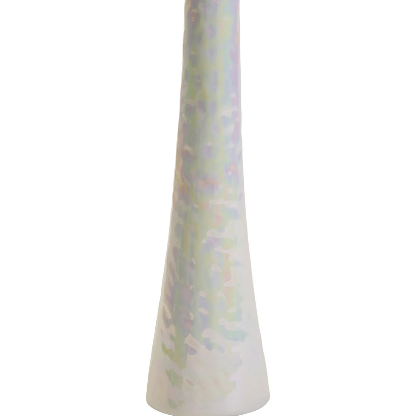 Questo candeliere è un sofisticato pezzo décor moderno di Gatti Ceramica. Dopo la formatura e la prima cottura, la maiolica viene dipinta a mano in bianco perla e poi cotta per la seconda volta. Il pezzo è rifinito con un lustro di madreperla e, di conseguenza, con una terza cottura, secondo le antiche tecniche di Faenza, capitale della ceramica del Nord Italia.
