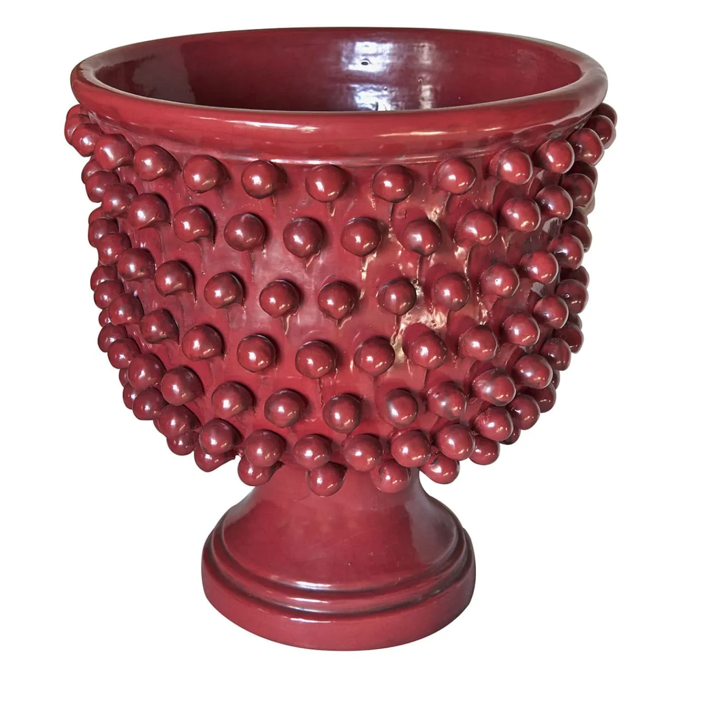 Realizzato meticolosamente da mani esperte, questo meraviglioso cachepot è il pezzo d’accento perfetto per un’area esterna moderna. Realizzato in ceramica, presenta una superficie strutturata con nodi laccati in una tonalità rosso intenso. Questo prezioso design sarà un regalo unico e ideale da esporre in giardino.
