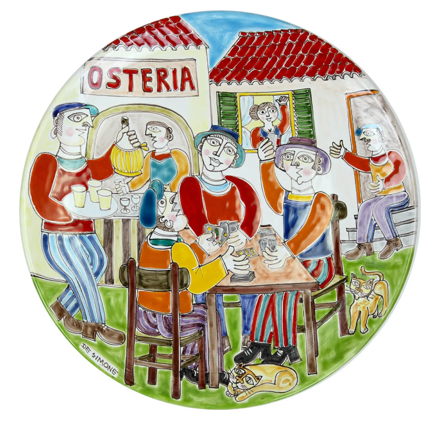 Realizzato e dipinto a mano nel pieno rispetto della tradizione siciliana, il piatto DS Osteria raffigura una classica scena da pranzo. Perfetto per mostrare il proprio amore per la tradizione siciliana, il piatto è stato progettato per essere esposto in una cucina tradizionale o in una zona pranzo. Ogni pezzo è firmato e viene spedito con un certificato di autenticità.