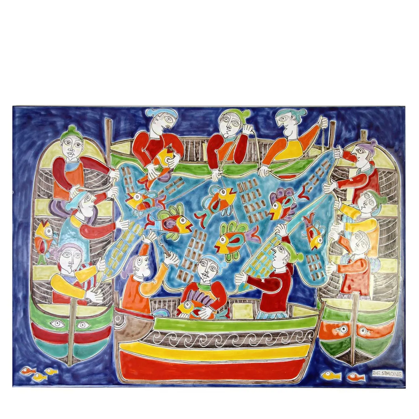 Con una magnifica rappresentazione della tradizionale pesca del tonno siciliana, nota come la Mattanza, questo pannello sapientemente lavorato e splendidamente dipinto a mano sarà un’ottima aggiunta a qualsiasi arredamento contemporaneo. Con una dimensione di 40 x 60 cm, questo complemento d’arredo in ceramica di alta qualità aggiungerà carattere e colore con la sua scena vibrante.