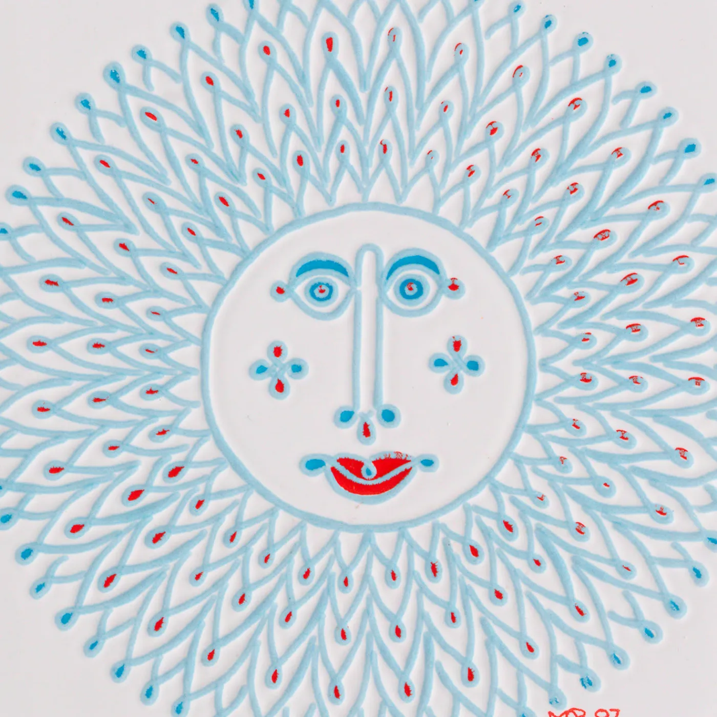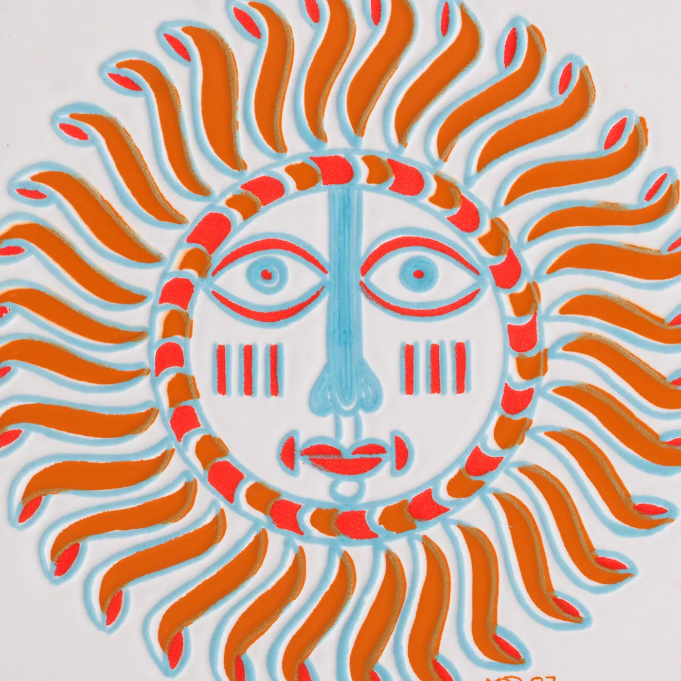 Quattro soli stilizzati decorano le quattro piastrelle di questo suggestivo set. Interamente realizzato a mano, ogni pezzo è stato decorato con la tradizionale tecnica del graffito, con cui i maestri artigiani di Cerasarda graffiano la superficie della terracotta, incorporando smalti vibranti che danno vita a vivaci combinazioni di colori. Ogni piastrella misura 20 x 20 cm.