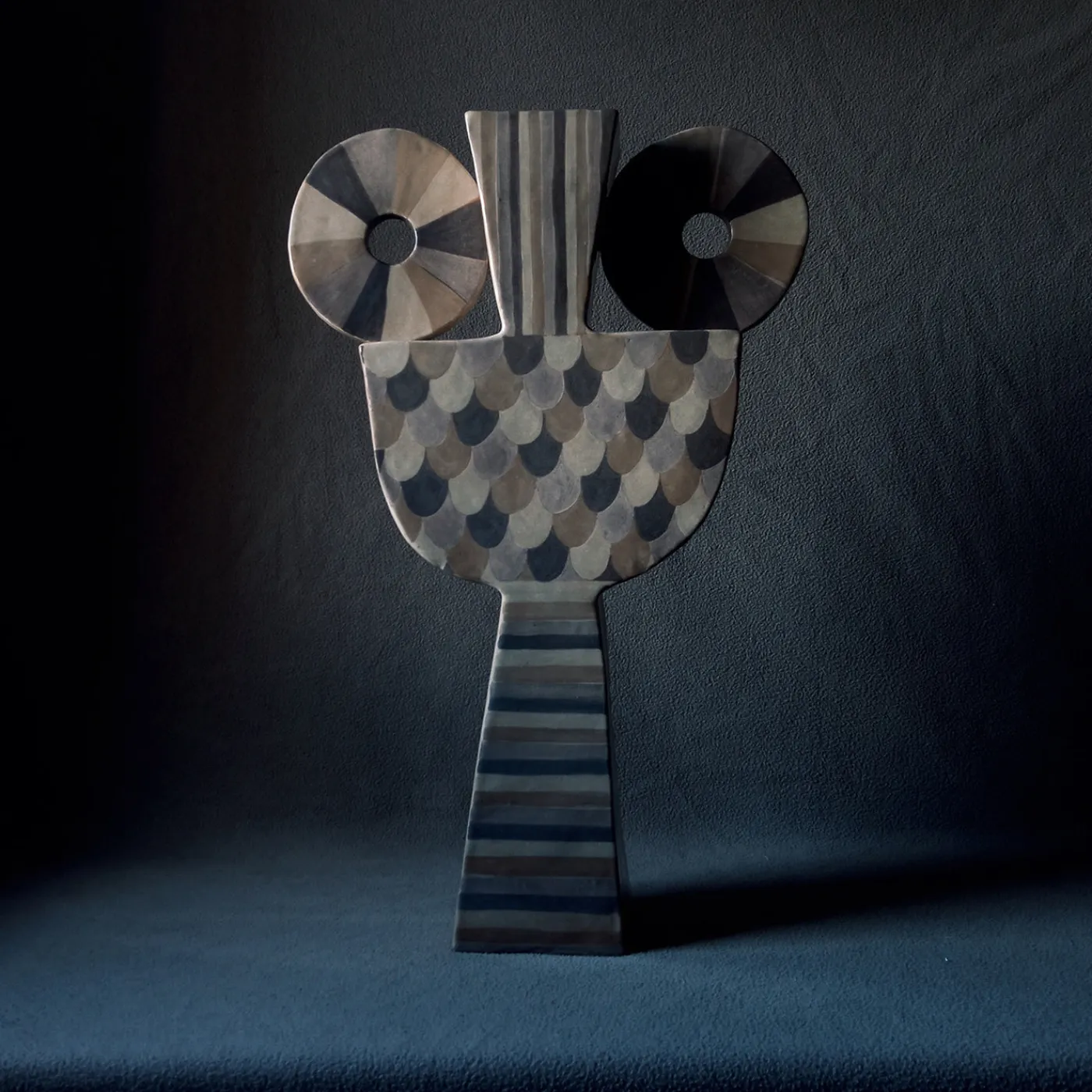 Otello è un grande vaso decorativo realizzato con tecnica a lastre. Presenta ingobbi dipinti a mano e il suo design reversibile mette in mostra decorazioni distinte su ciascun lato, offrendo opzioni di esposizione versatili. Il profilo sottile del vaso consente una facile collocazione in vari ambienti interni. Ogni pezzo è unico e può presentare leggere variazioni a causa della sua natura artigianale.