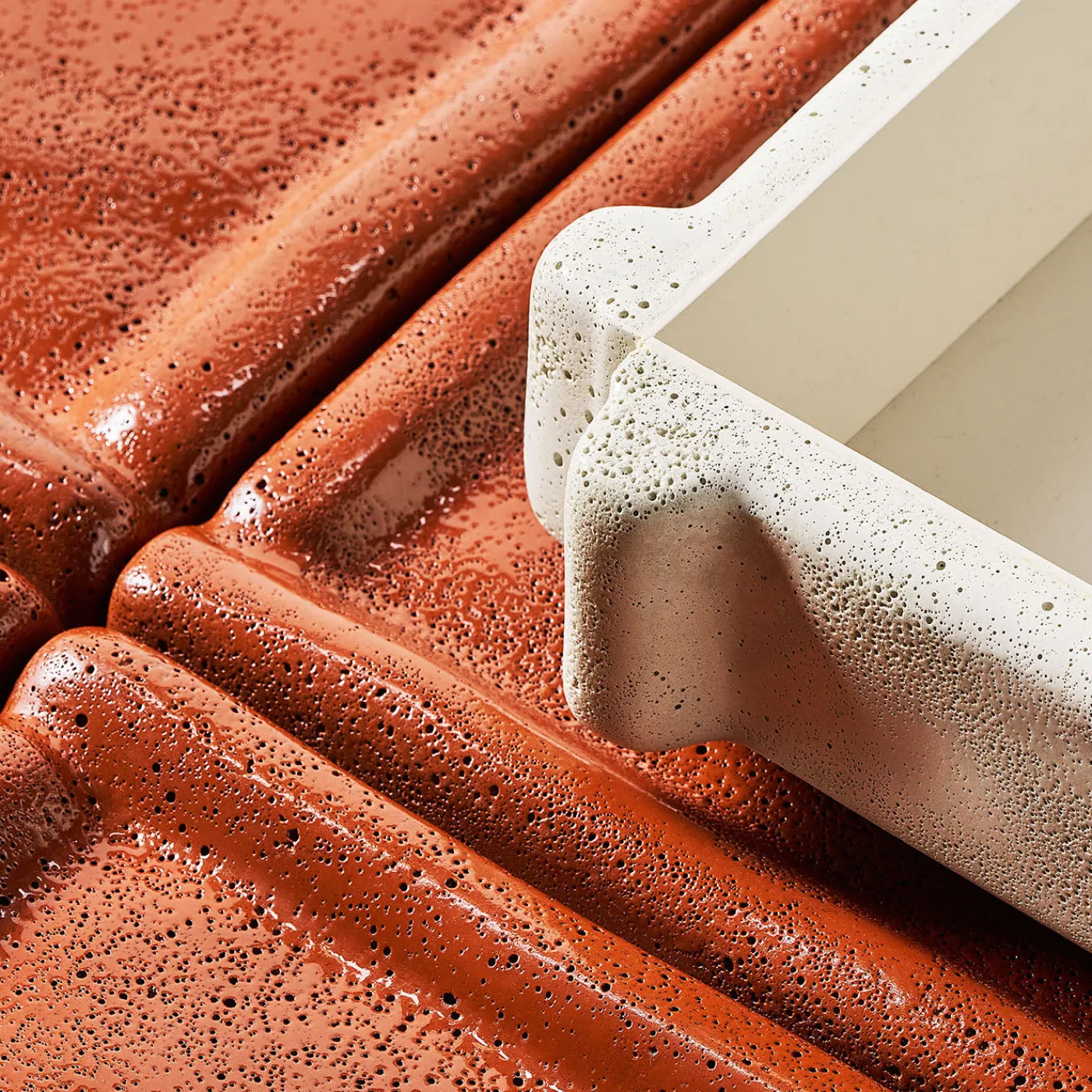 Lo svuotatasche decorativo bianco Riva di Patricia Urquiola cattura la fluidità dell’acqua attraverso i suoi volumi organici e modulari e i suoi bordi irregolari e pronunciati. La sua superficie dinamica riflette il ritmo delle onde che si infrangono, offrendo un’esperienza tattile e visiva che trasforma ogni ambiente. La forma scultorea del vide poche lo rende un’aggiunta distintiva agli interni contemporanei.