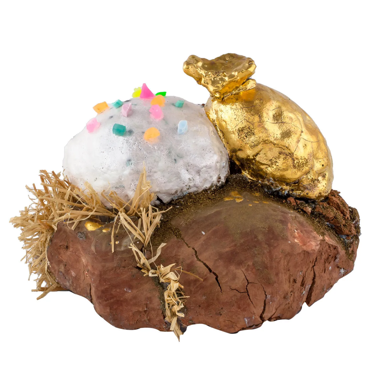 Questa gamma di pezzi originali e artistici è realizzata in totale libertà e sperimentazione, con l’aggiunta di silicone, cristalli, animali in porcellana e qualche piccolo residuo di produzione. Un centrotavola insolito crea un legame tra le persone, diventando un meraviglioso punto di conversazione quando si intrattengono gli ospiti. Una superficie in stile rock e terroso, con dettagli di paglia, colore e oro, crea un mondo affascinante.