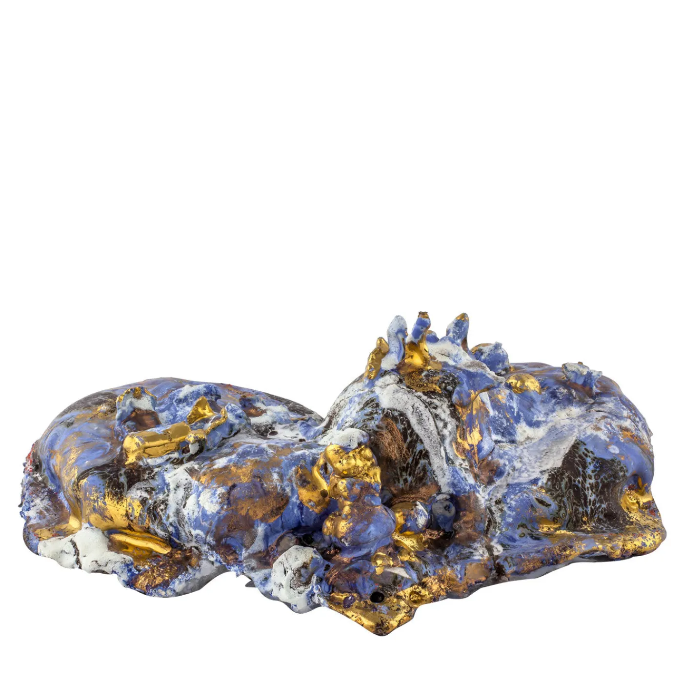 In un intrigante mondo artistico, questi pezzi sono realizzati in totale libertà e sperimentazione. Aggiungendo decorazioni in silicone, cristalli, animali in porcellana e piccoli scampoli di produzione, formano un mondo da esplorare con una superficie in stile rock di colore viola intenso e con splendidi dettagli in oro. Questo centrotavola sarà il punto focale di ogni tavola.