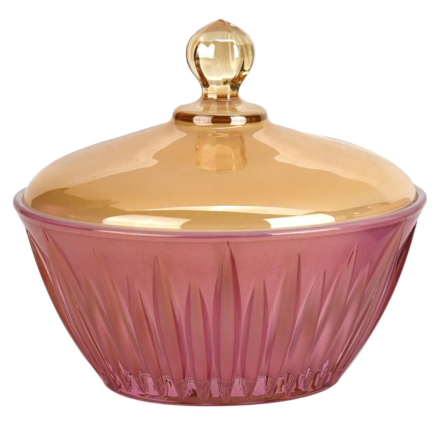 Estetica e praticità contraddistinguono questa superba scatola della Collezione Prestigioso di pezzi in cristallo colorato. Questo oggetto d’arte, interamente decorato a mano, è composto da una ciotola rosa con incisioni verticali e da un raffinato coperchio giallo che lo ravviva con un accento vivace ed elegante.