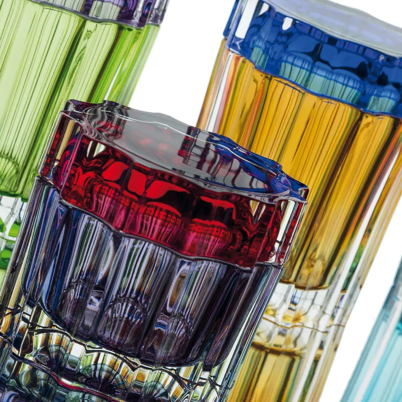 Questo set di due eleganti scatole con coperchio si distingue per la decorazione verticale incisa a mano che anima ciascuno dei due pezzi. Realizzate a mano in vetro in una sofisticata tonalità viola, queste scatole saranno un’aggiunta estetica e funzionale ad arredamenti moderni o tradizionali.
